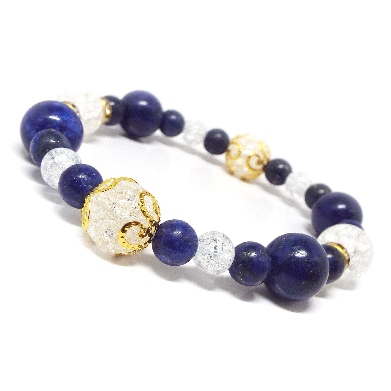 RAZU 天然石 パワーストーン ブレスレット クラック水晶 ラピスラズリ レディース アクセサリー DB0099