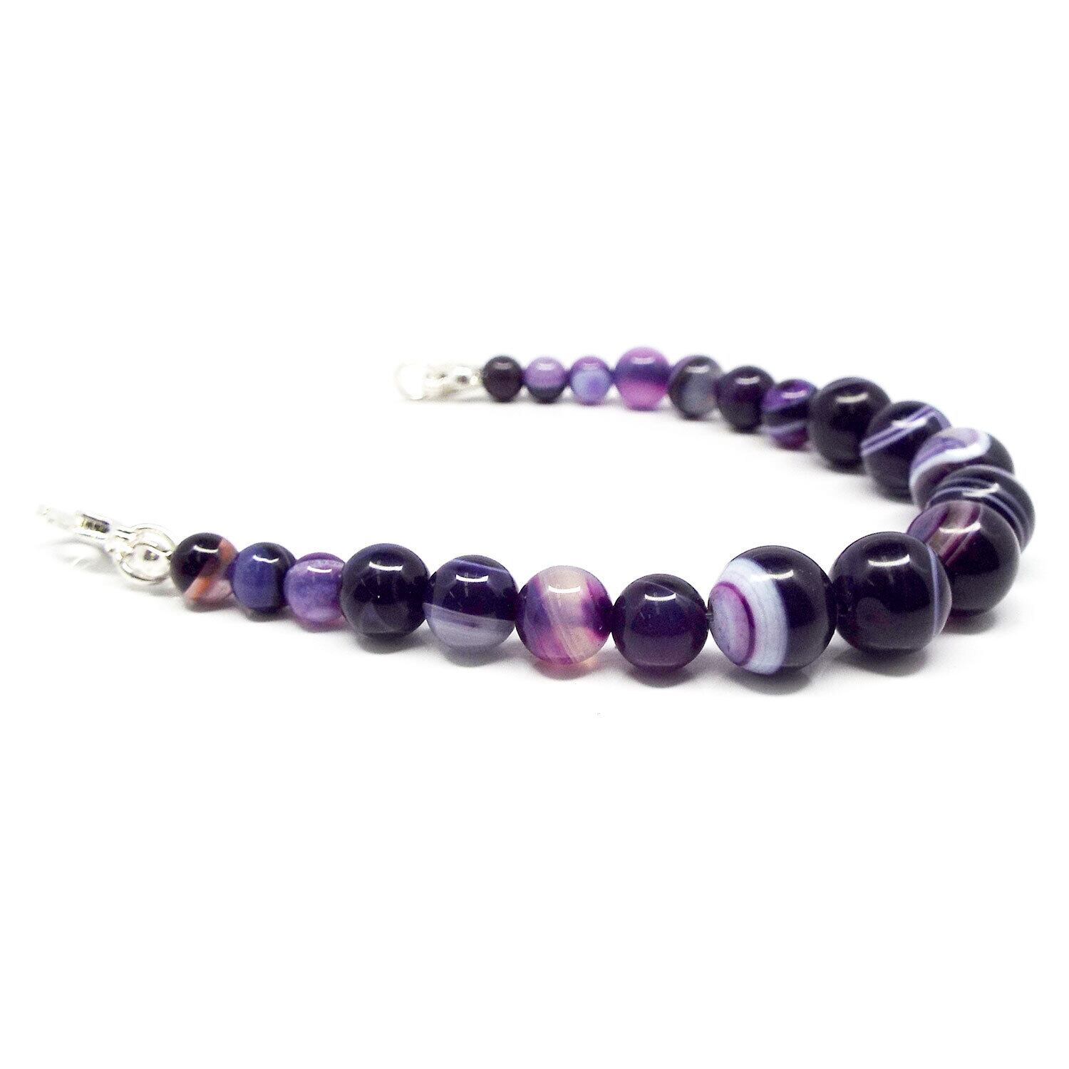 玉サイズ:バンデットアゲート 紫藍縞瑪瑙 約10mm・約8mm・約6mm