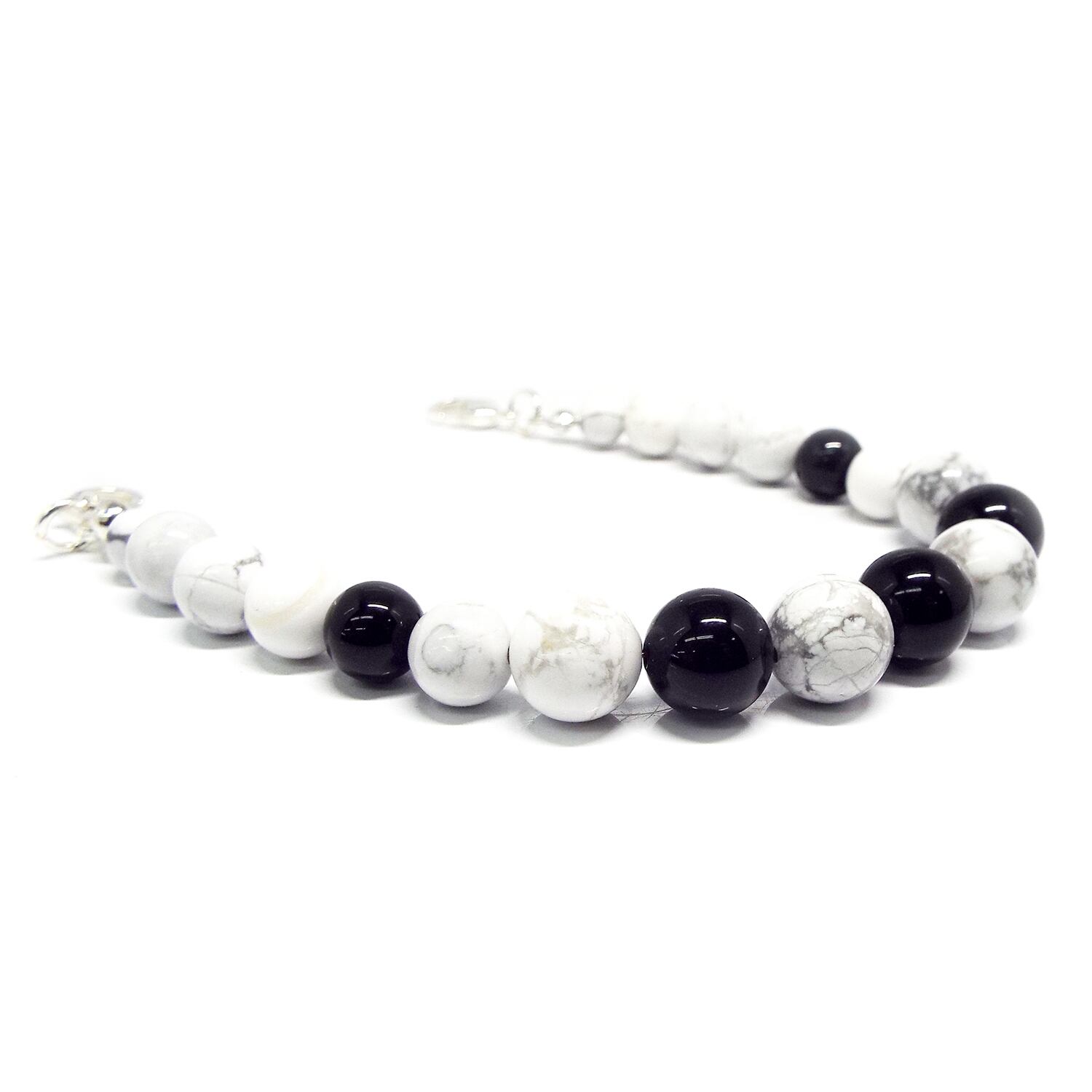 玉サイズ:ホワイトターコイズ 約10mm・約8mm・約6mm オニキス 約10mm・約8mm