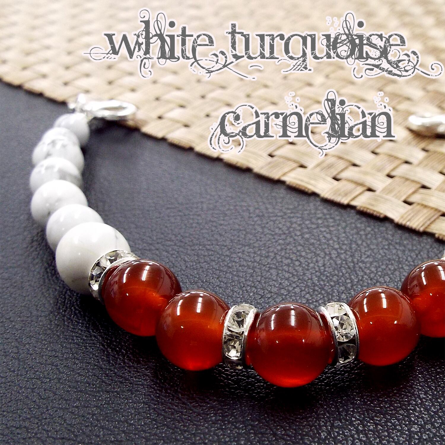 玉サイズ:ホワイトターコイズ 約10mm・約8mm・約6mm カーネリアン 約10mm