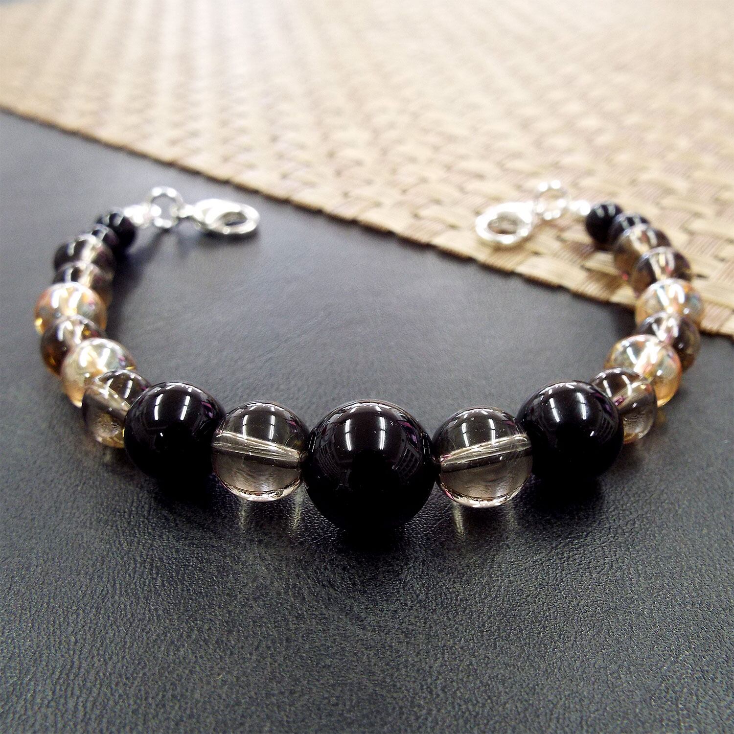 玉サイズ:オニキス 約12mm・約10mm・約6mm スモーキークォーツ 約10mm・約8mm ゴールデンオーラ 約8mm