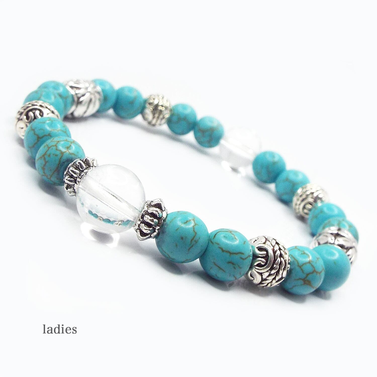 天然石 パワーストーン ブレスレット 水晶 ターコイズ ペア 内周18cm ver. DB0022
