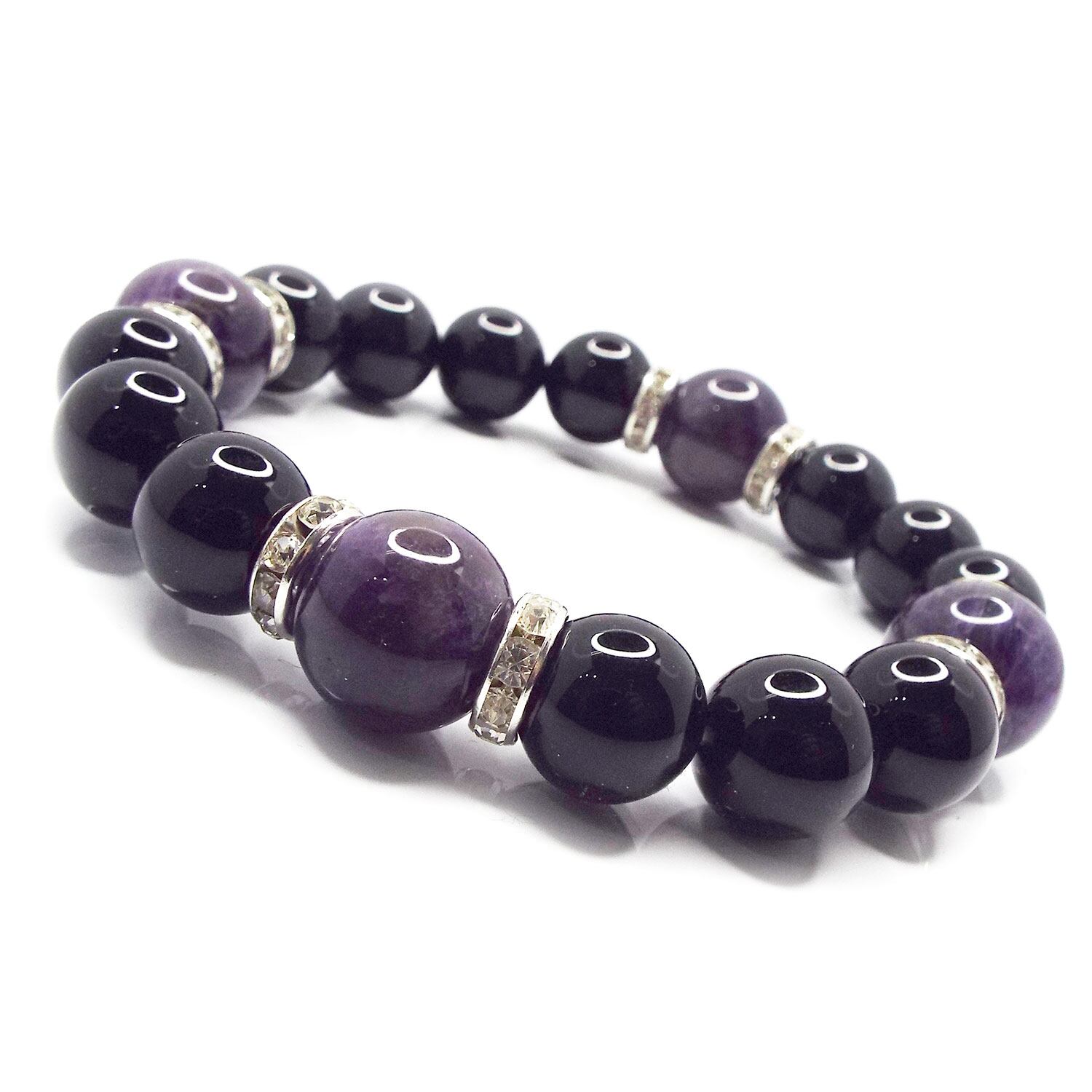 大迫力 天然石 パワーストーン ブレスレット アメジスト オニキス DB0008
