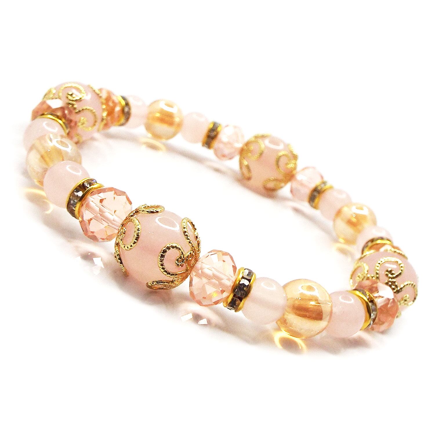 天然石 パワーストーン ブレスレットローズクォーツ ゴールデンオーラ DB0001