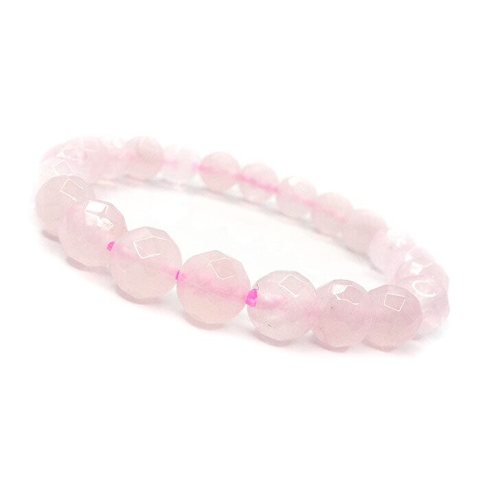 天然石 パワーストーン ブレスレット ローズクォーツ 64面カット 紅水晶 約6mm B1-92-6m1p