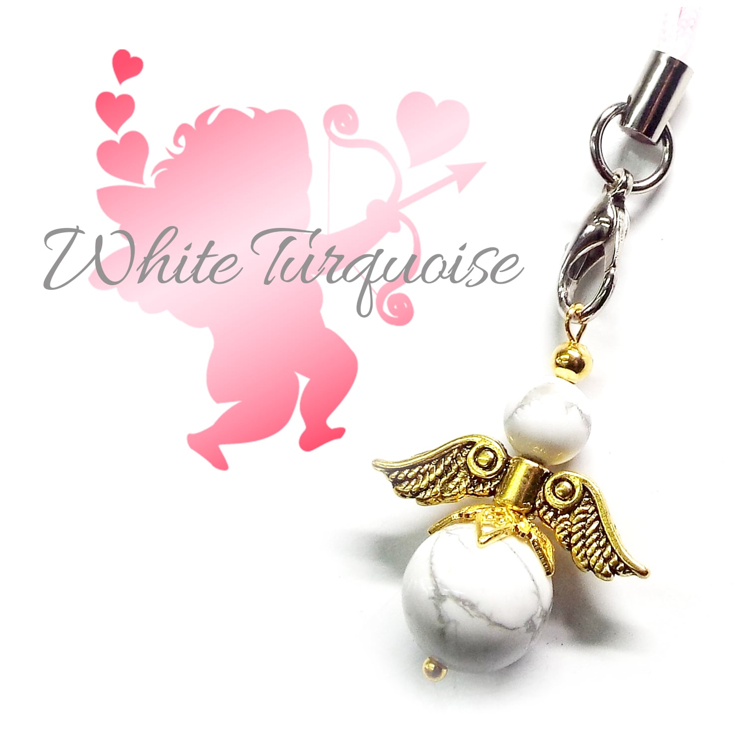 大玉 10mm 幸せのお守り エンジェル ストラップ ホワイトターコイズ ST1-19-4