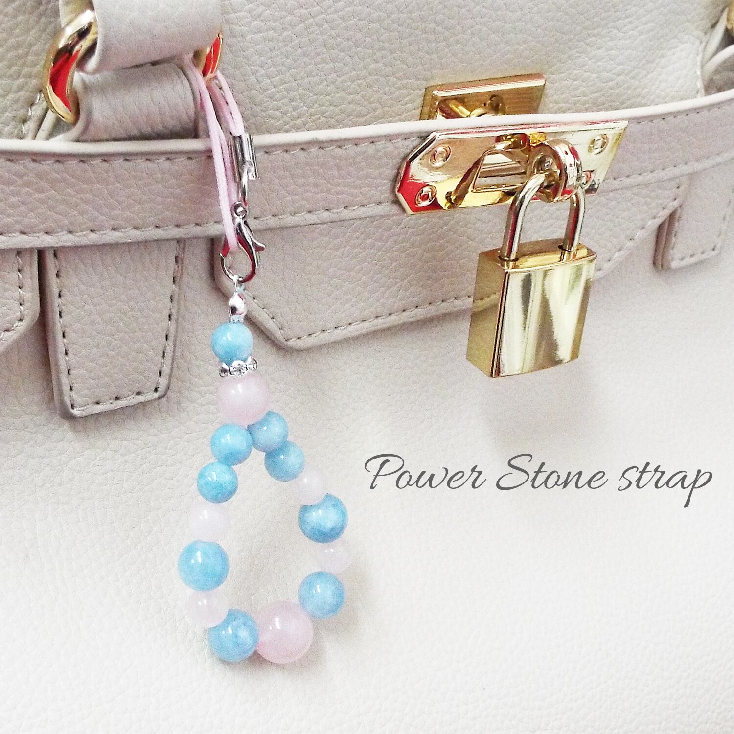 天然石 パワーストーン ストラップ ブルークォーツ ローズクォーツ ST1-21
