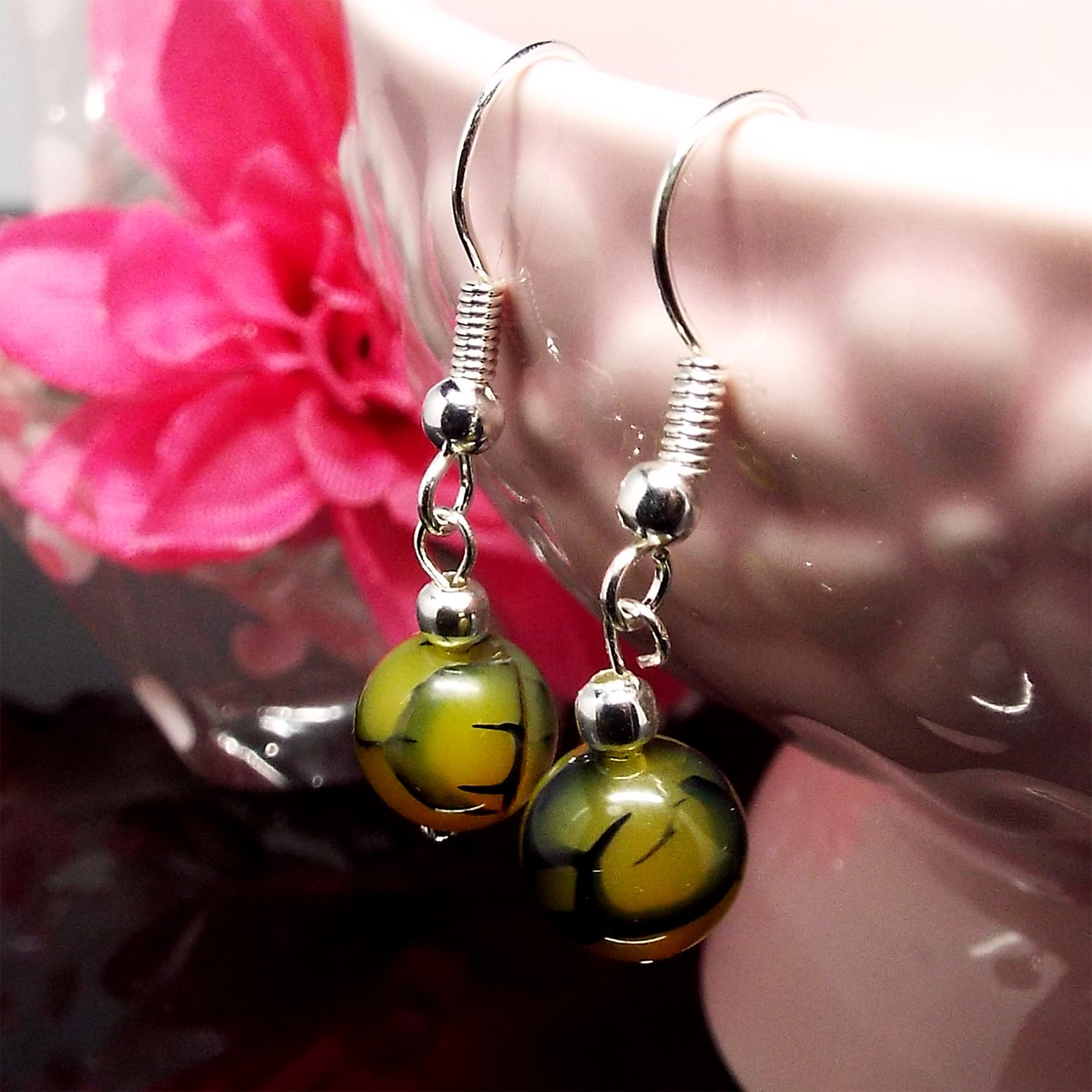 天然石 ピアス ドラゴンアゲート 龍紋瑪瑙 約10mm S1-84-10m1p