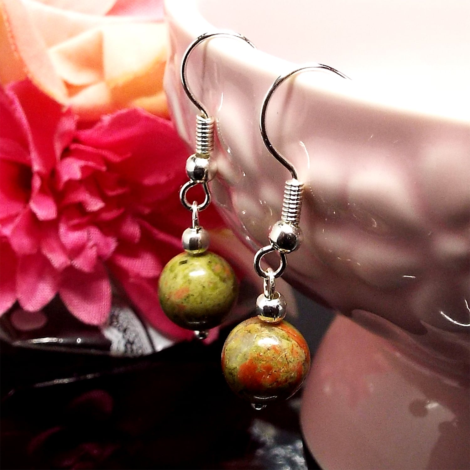 天然石 ピアス ユナカイト 緑簾石 約8mm S1-91-8m1p