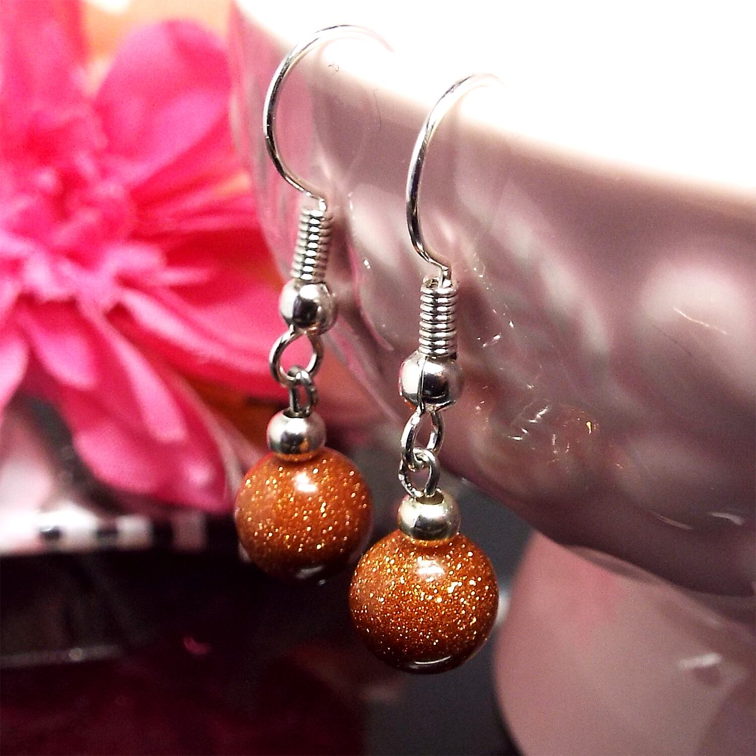 天然石 ピアス ゴールドストーン 金砂石 約6mm S1-96-6m1p