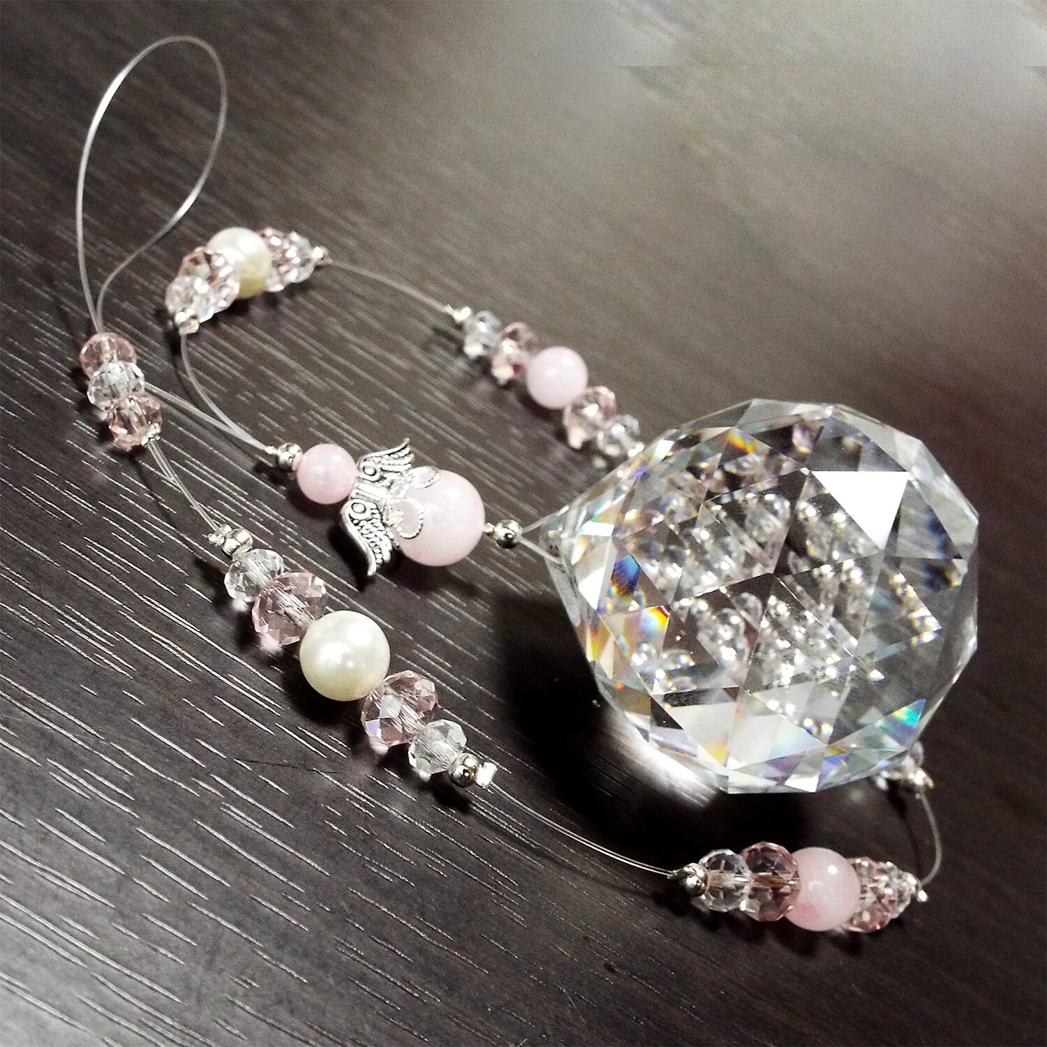 愛を呼び込む 天然石 ローズクォーツ パール 天使のサンキャッチャー トップ 約30mm SN1-12-2