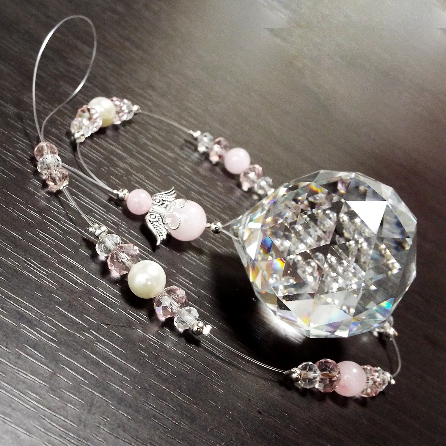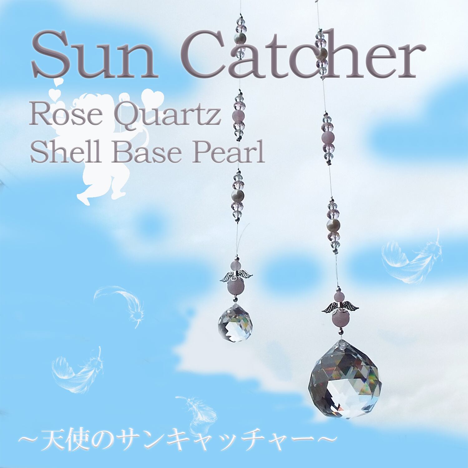 愛を呼び込む 天然石 ローズクォーツ パール 天使のサンキャッチャー トップ 約40mm SN1-12-3