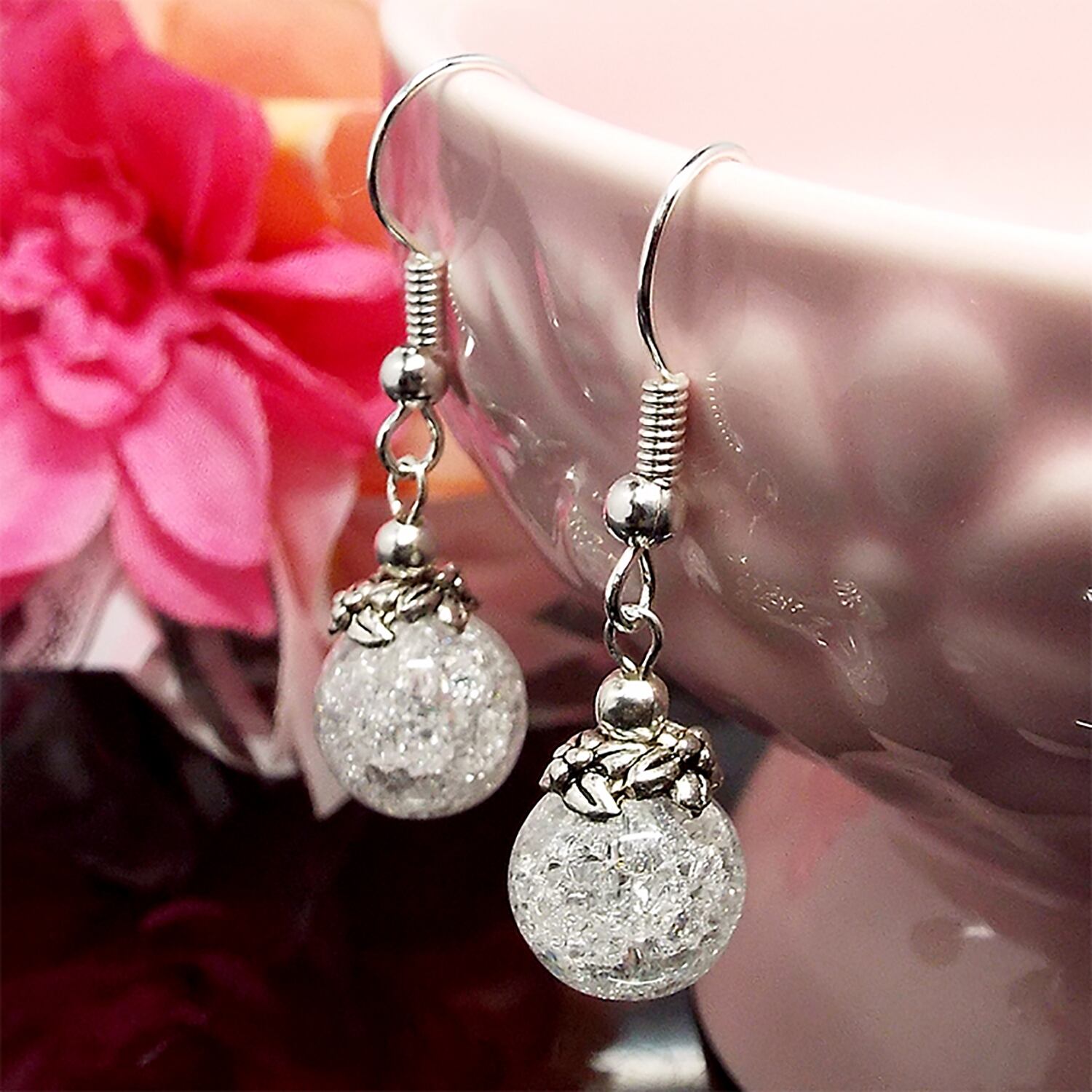 大玉10mm 天然石 ピアス flower フラワー ピアス クラック水晶 SS-1-4