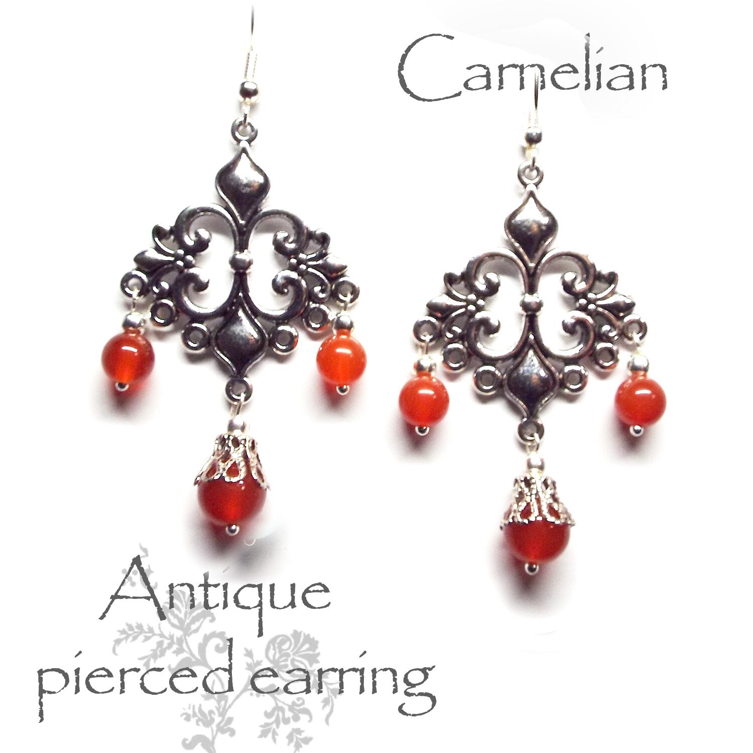 大人可愛い 天然石 アンティーク ピアス カーネリアン SS-11-6