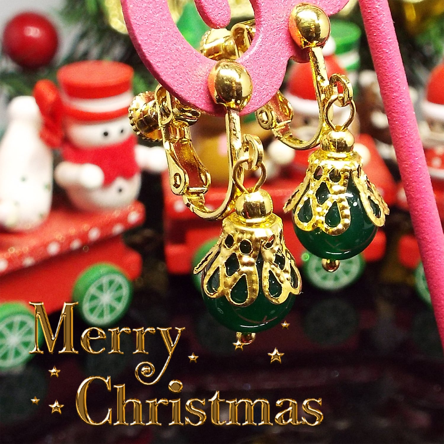 Happy Xmas クリスマス きらきら 大人可愛い ピアス グリーンメノウ SS-6-3