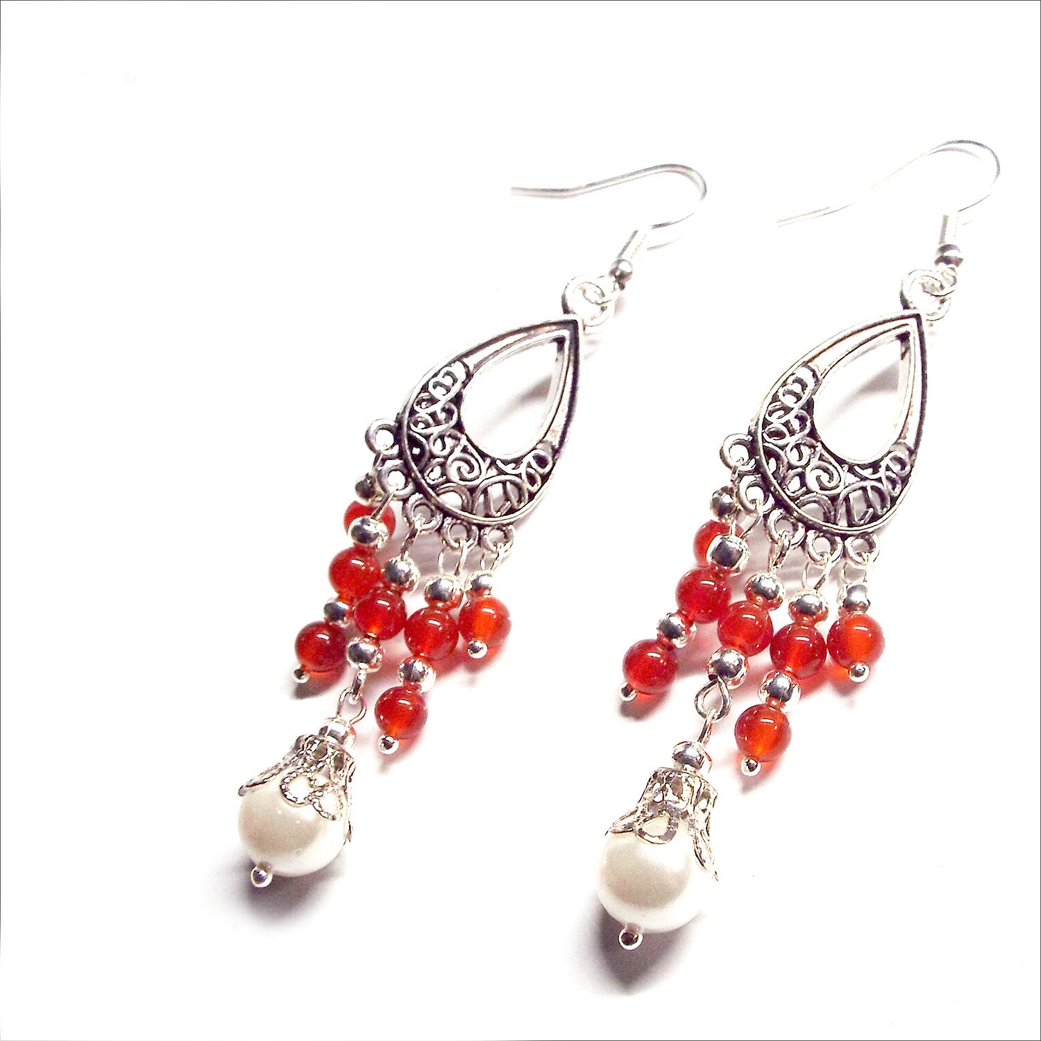 仕事運アップ、健康のお守りとして人気のカーネリアンとオールシーズン活躍するシェルパールを組み合わせた大人ピアス♪