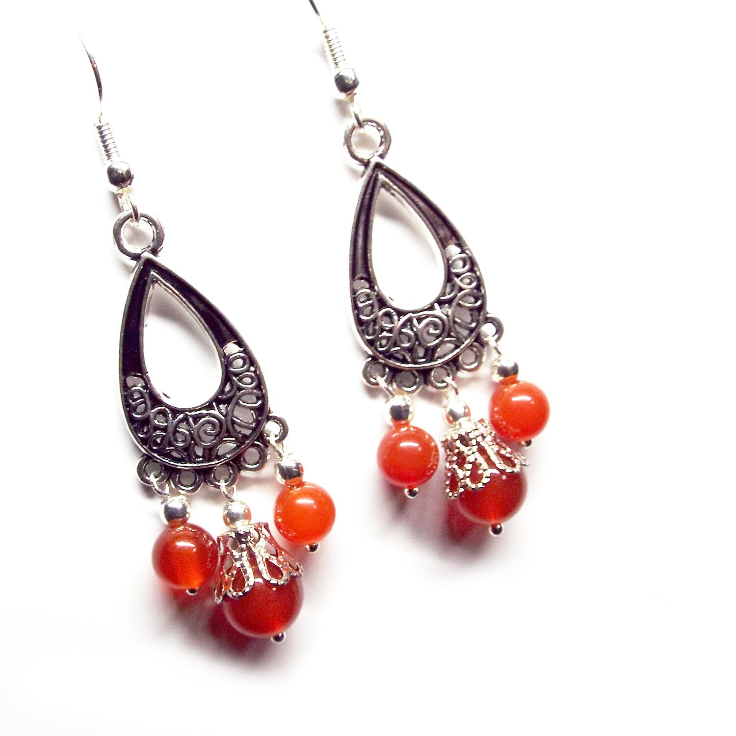優しく揺らめく 天然石 アンティーク ピアス カーネリアン SS-9-6