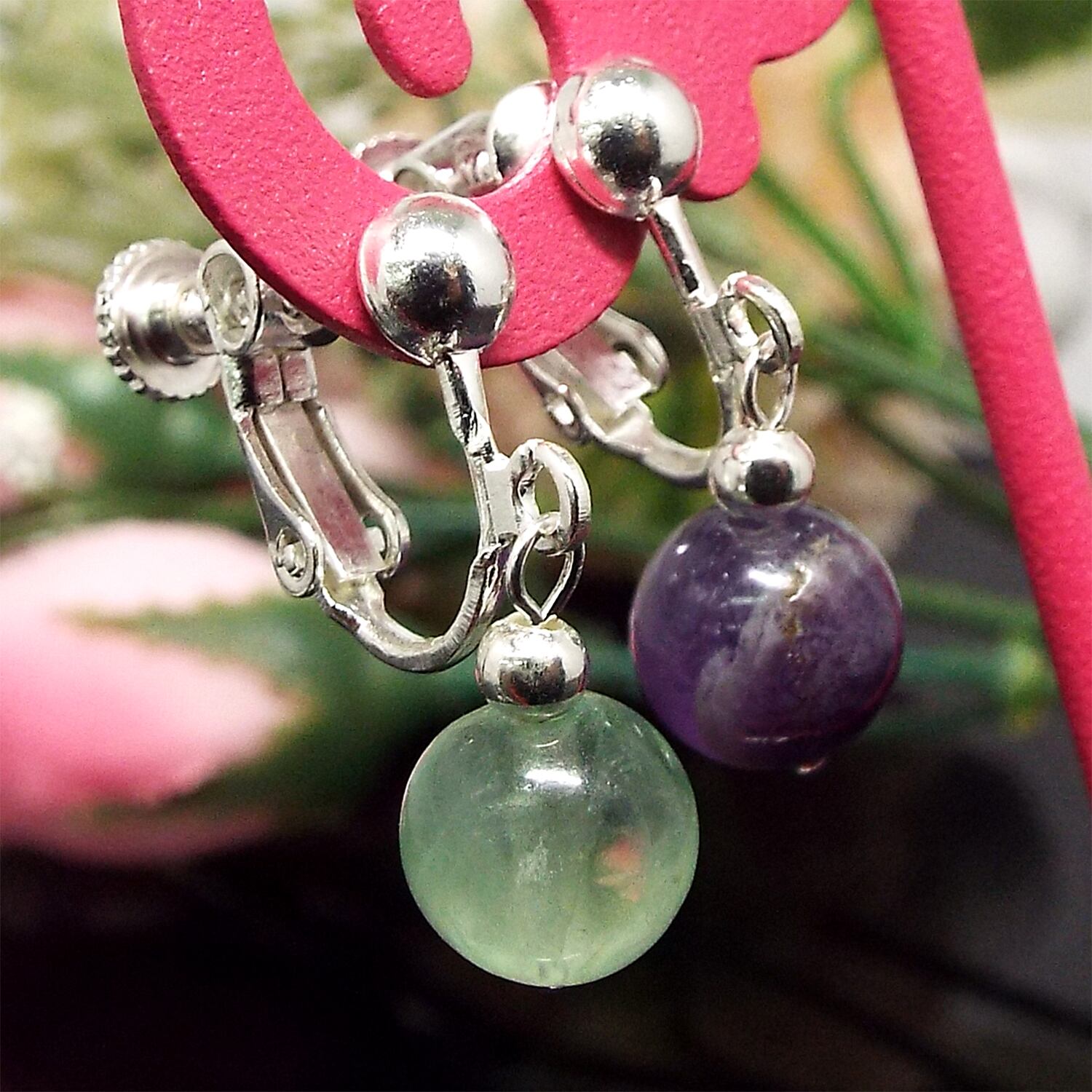 天然石 イヤリング ミックス フローライト 蛍石 約10mm SE1-106-10m1p