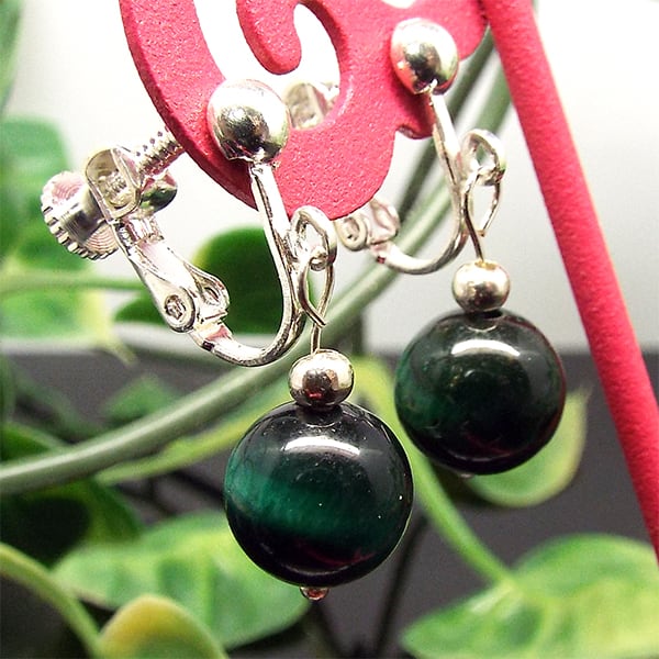 天然石 イヤリング グリーンタイガーアイ 虎目石 約10mm SE1-48-10m1p