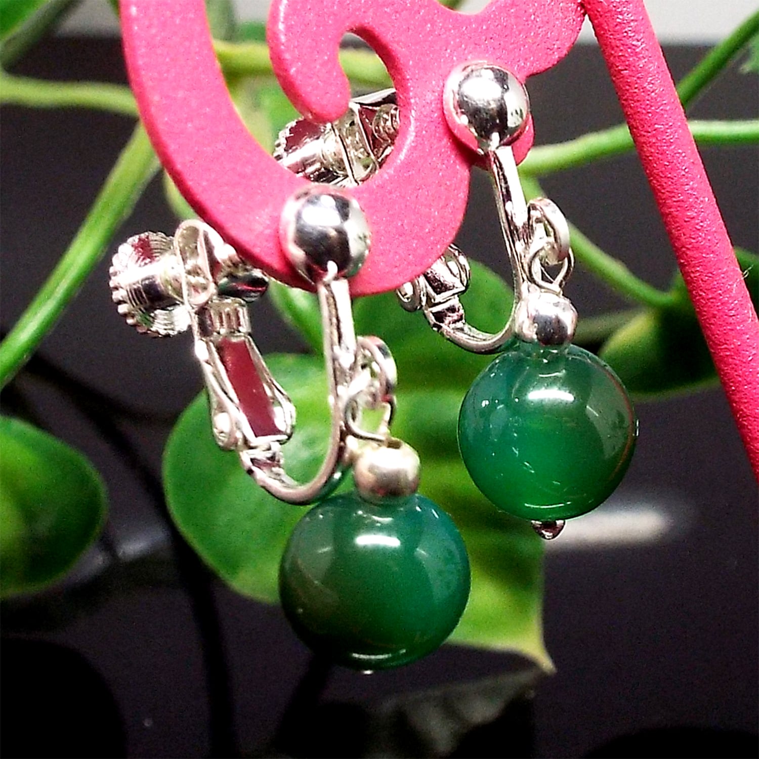 天然石 イヤリング グリーンメノウ 緑瑪瑙 約10mm SE1-89-10m1p