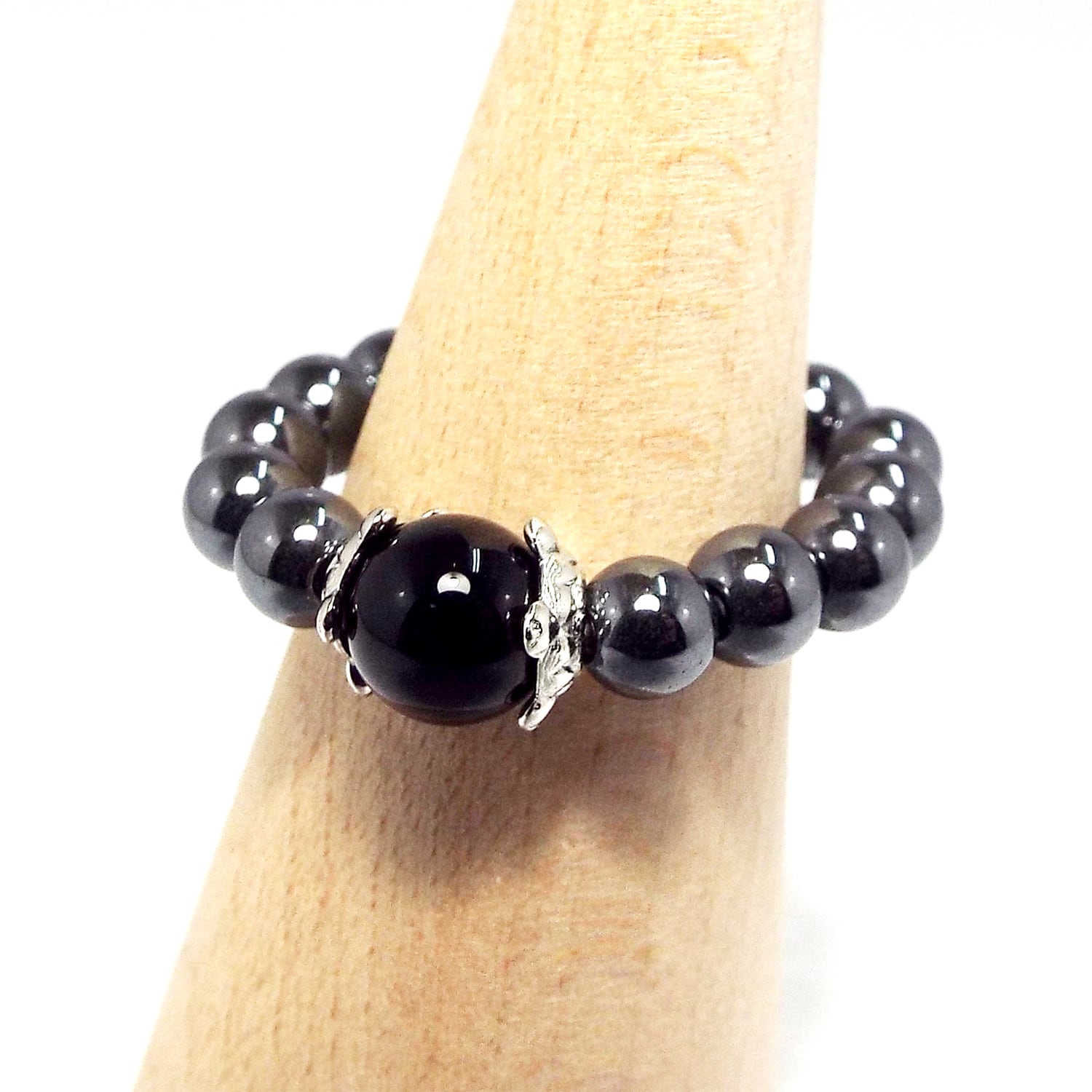 天然石 パワーストーン ヘマタイトリング 指輪 オニキス J1-12-11