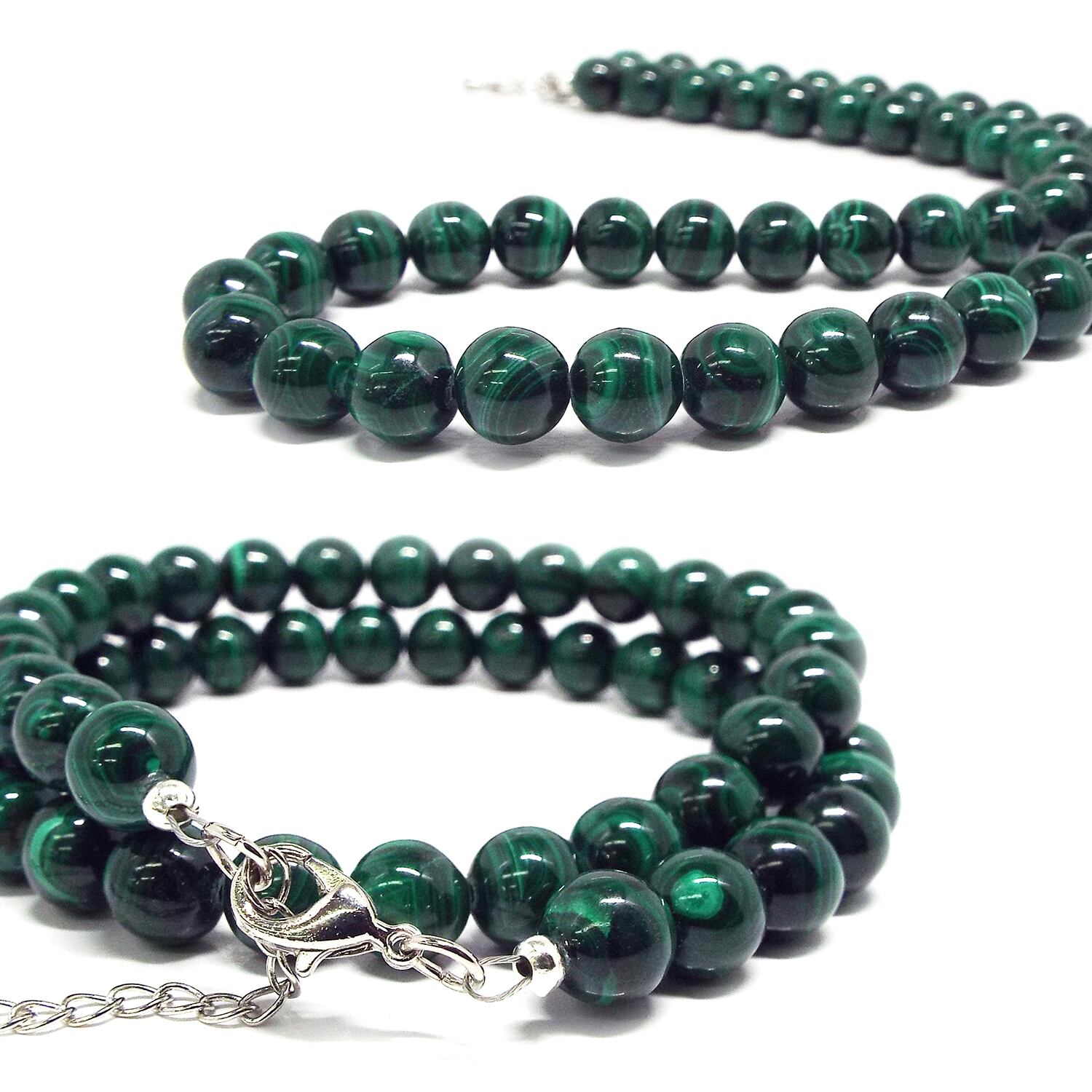 天然石 パワーストーン ネックレス マラカイト 孔雀石 玉サイズ:約10mm N1-105-10m1p