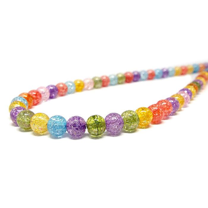 天然石 パワーストーン ネックレス ミックスカラー クラック水晶 約6mm N1-86-6m1p