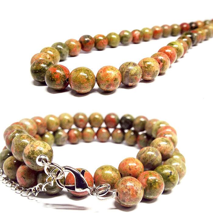 天然石 パワーストーン ネックレス ユナカイト 緑簾石 約6mm N1-91-6m1p