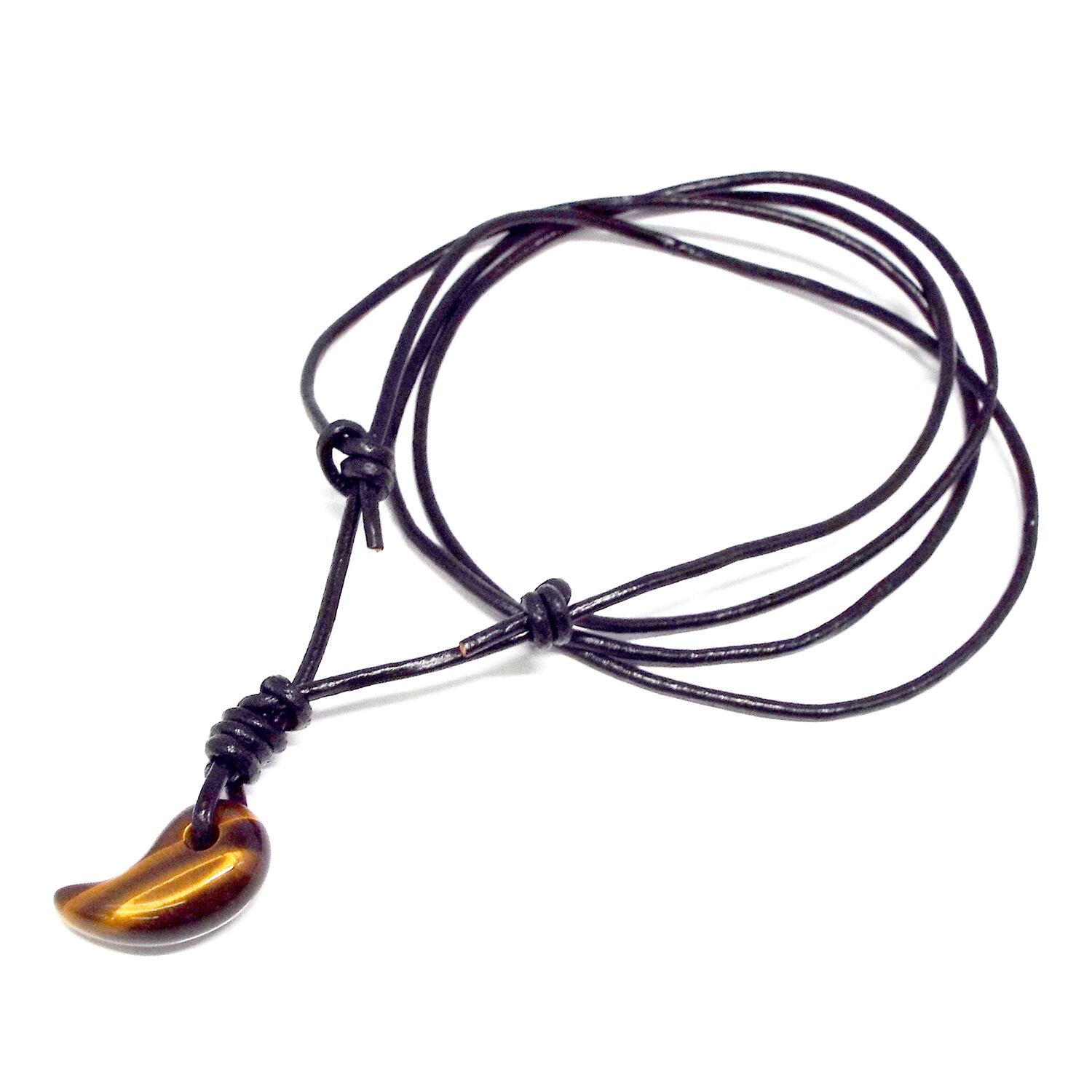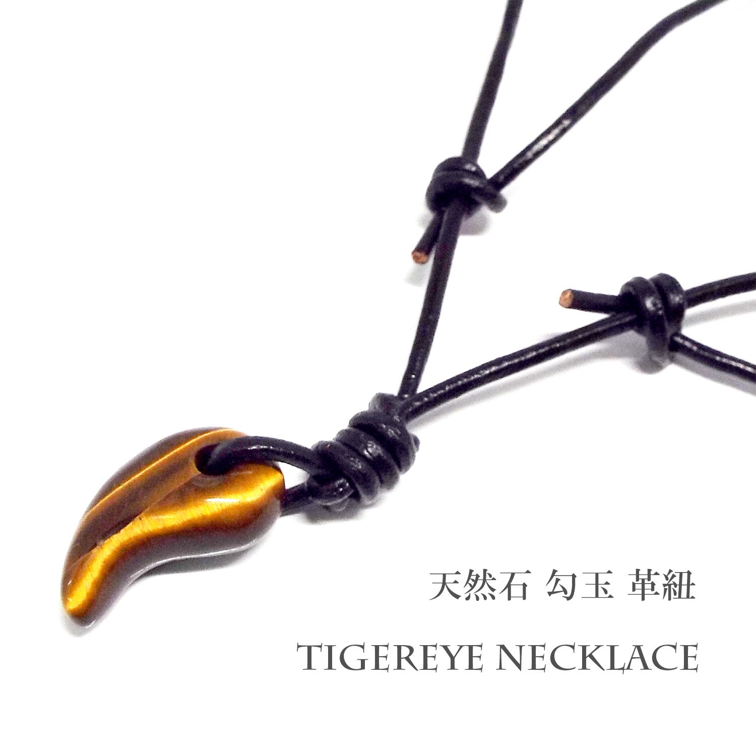 天然石 パワーストーン 勾玉 革紐ネックレス 調整式 タイガーアイ 厄除け ND5-2