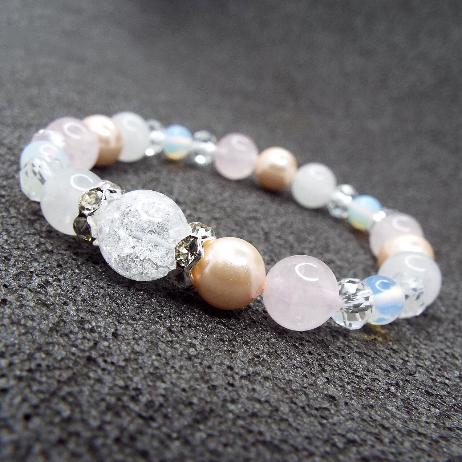 天然石 パワーストーン ブレスレット クラック水晶 パール ローズクォーツ D1-67