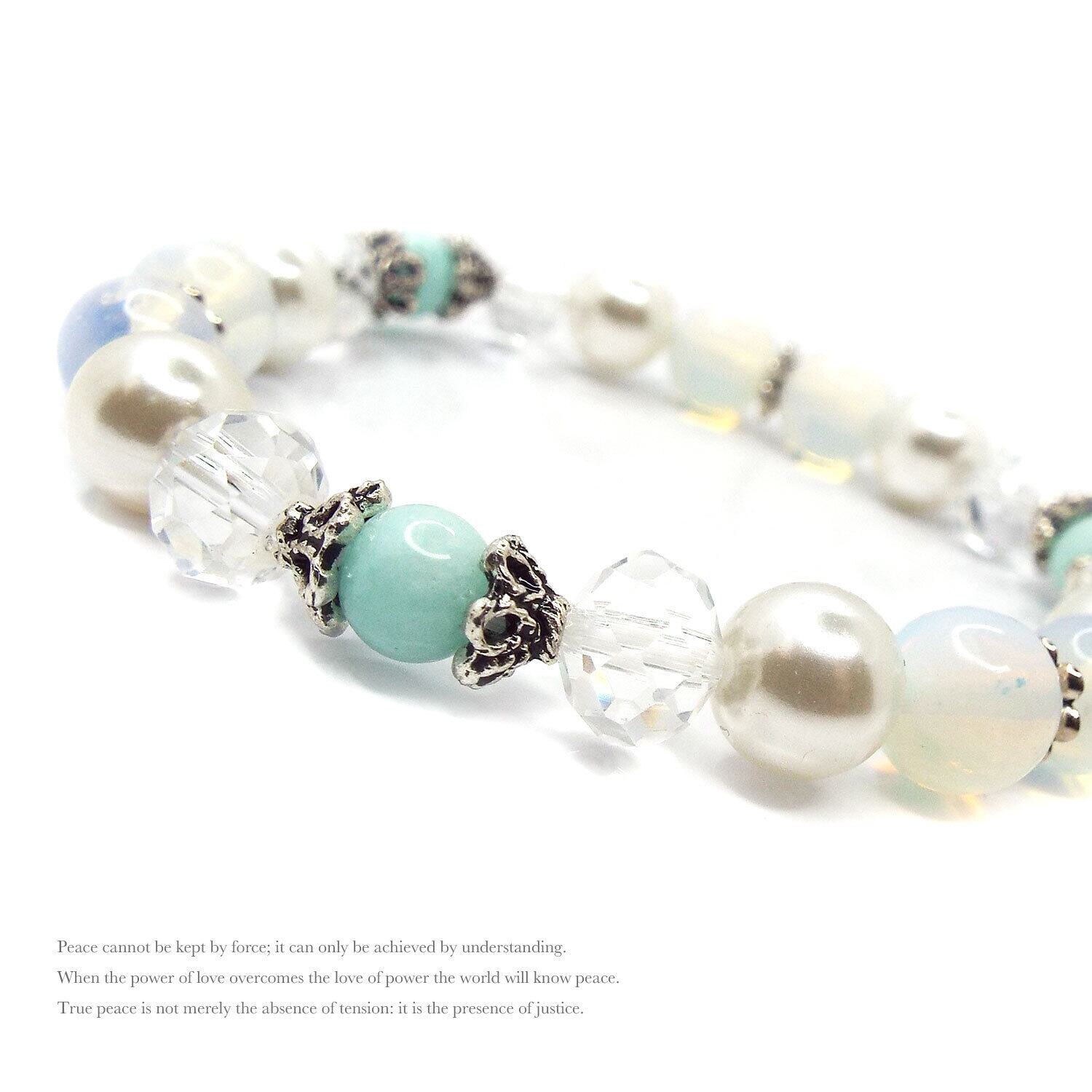 天然石 パワーストーン ブレスレット アマゾナイト パール オパール D1-69