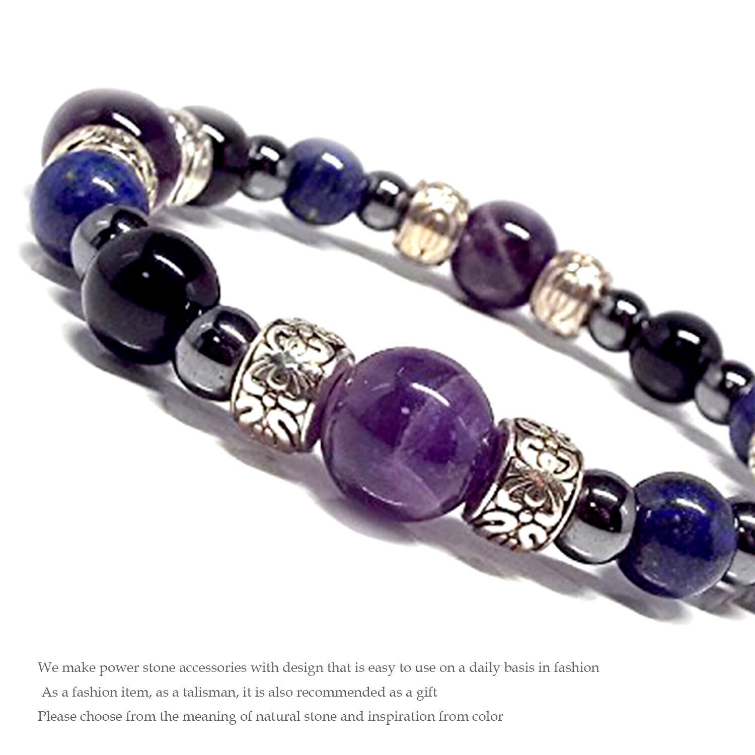 天然石 パワーストーン ブレスレット アメジスト ラピスラズリ オニキス D1-82