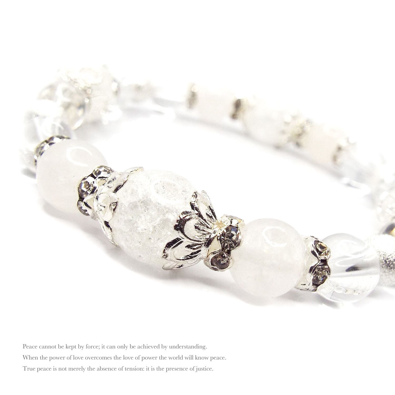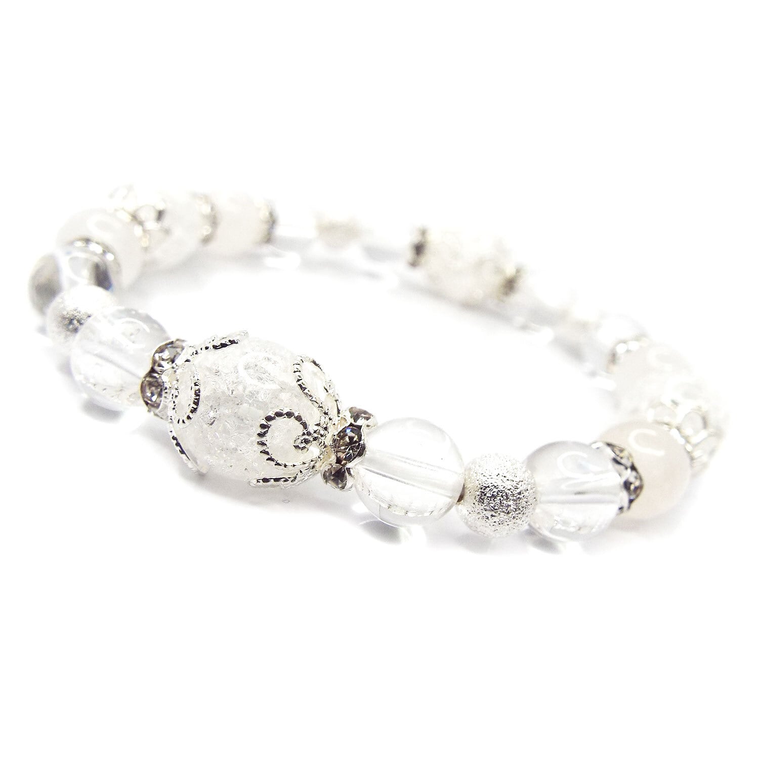 天然石 パワーストーン ブレスレット 美しい ホワイトブレスレット クラック水晶 アクセサリー D1-86
