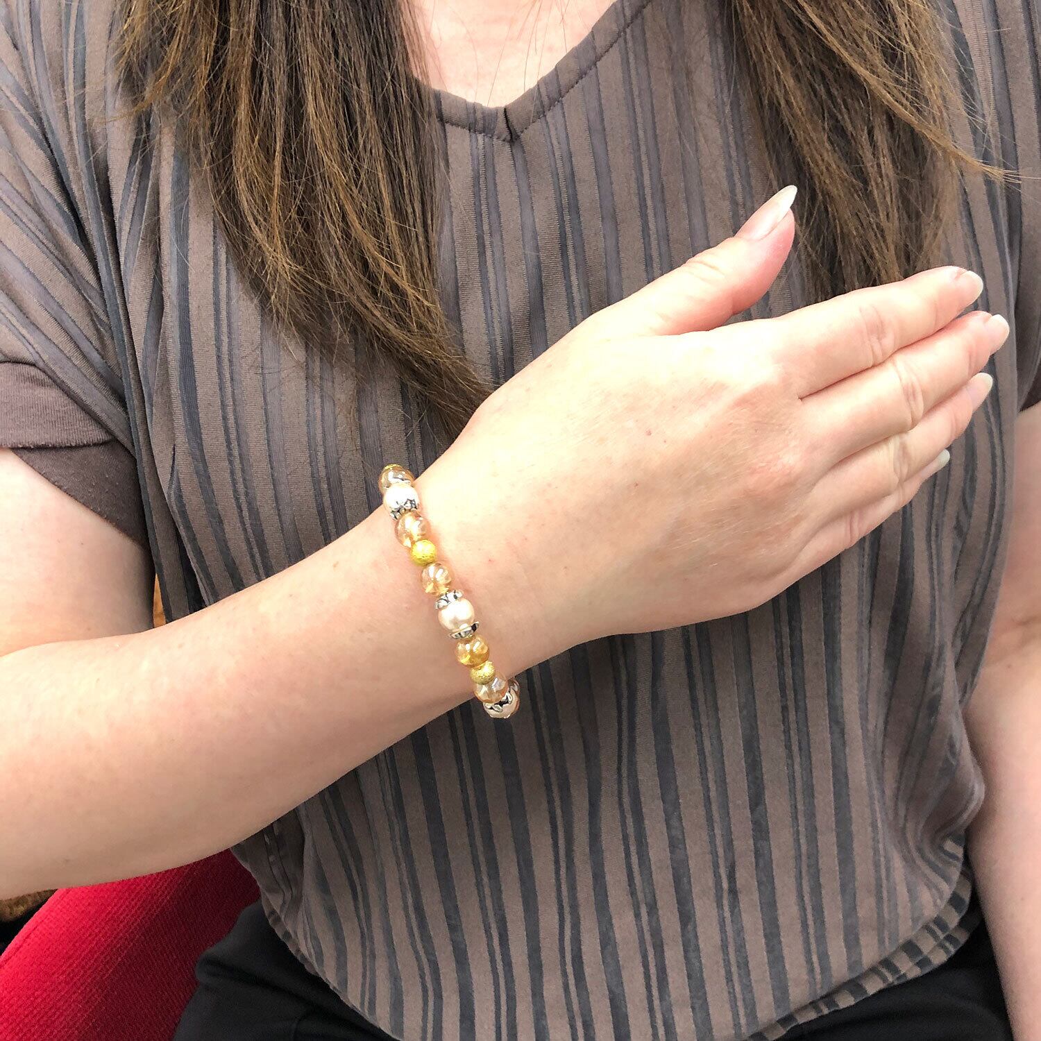 天然石 パワーストーン ブレスレット ピンクシェルパール ゴールデンオーラ水晶 ラグジュアリー D1-90-1