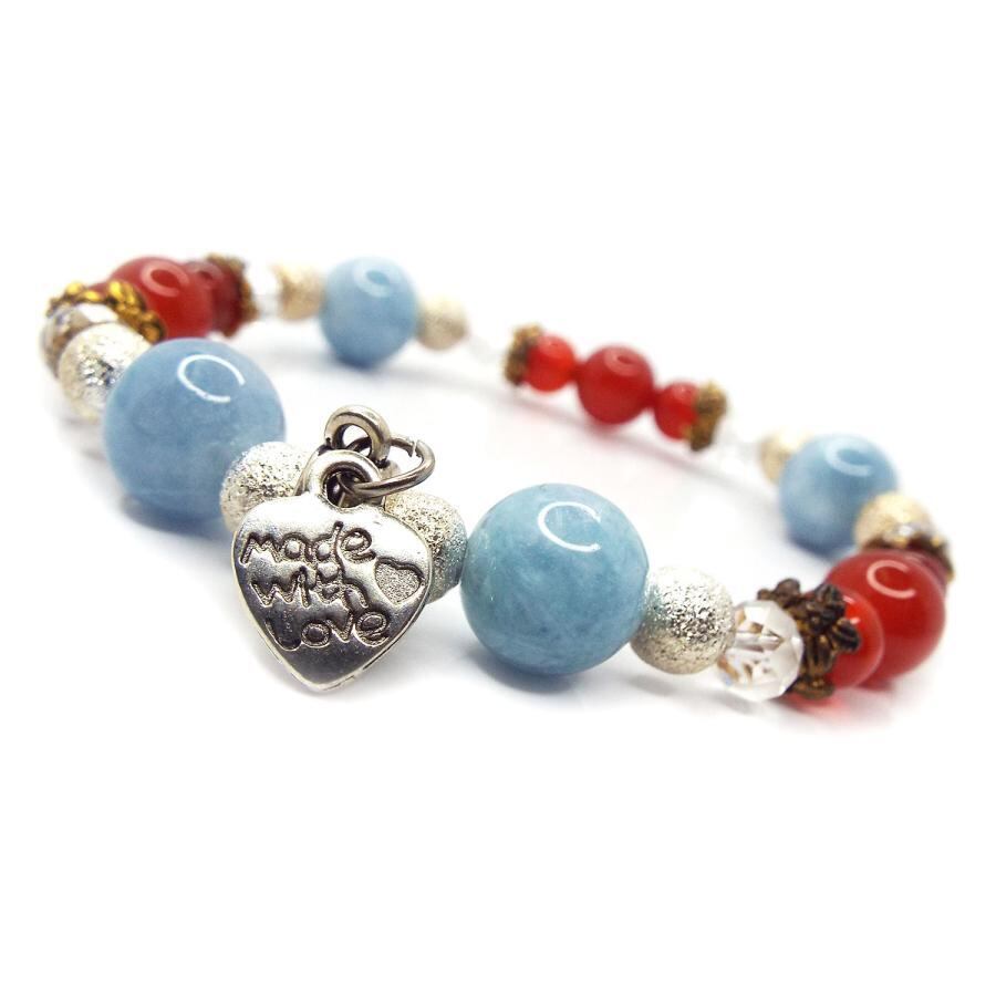 天然石 パワーストーン ブレスレット アクアマリン カーネリアン LOVEチャーム D2-18
