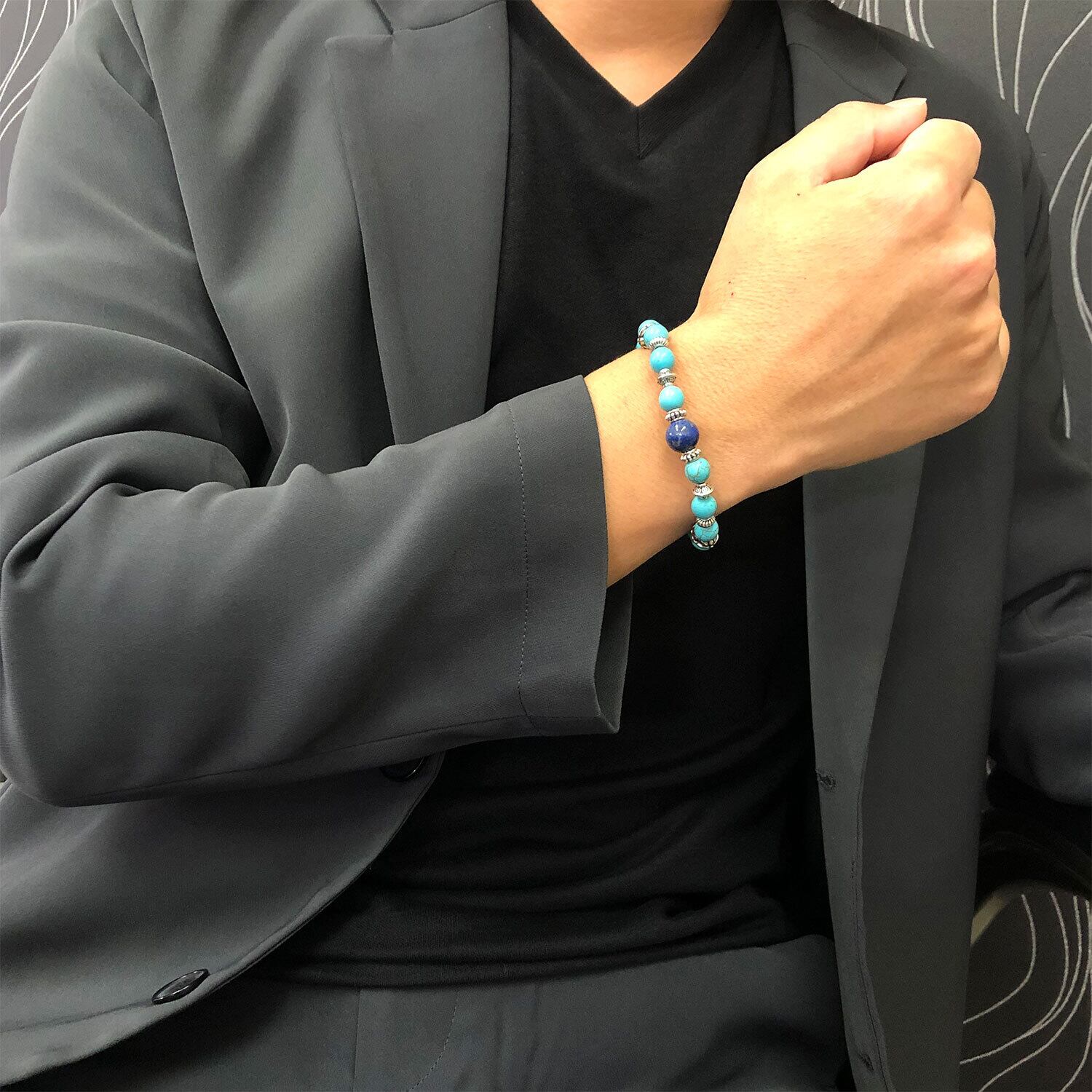 天然石 パワーストーン ブレスレット ターコイズ メンズ ラピスラズリ D2-52-2