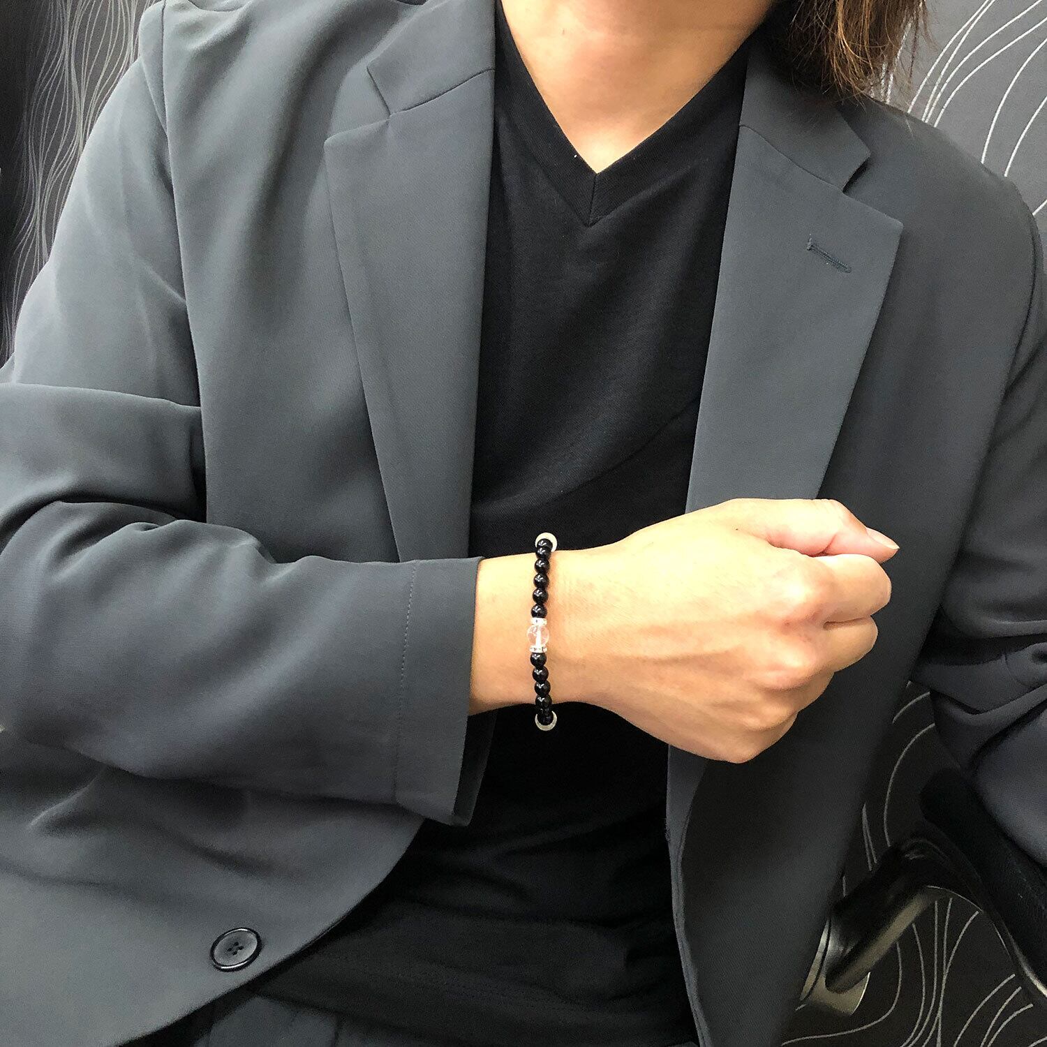 強い精神力を養う 天然石 パワーストーン ブレスレット オニキス 水晶 D2-65-1