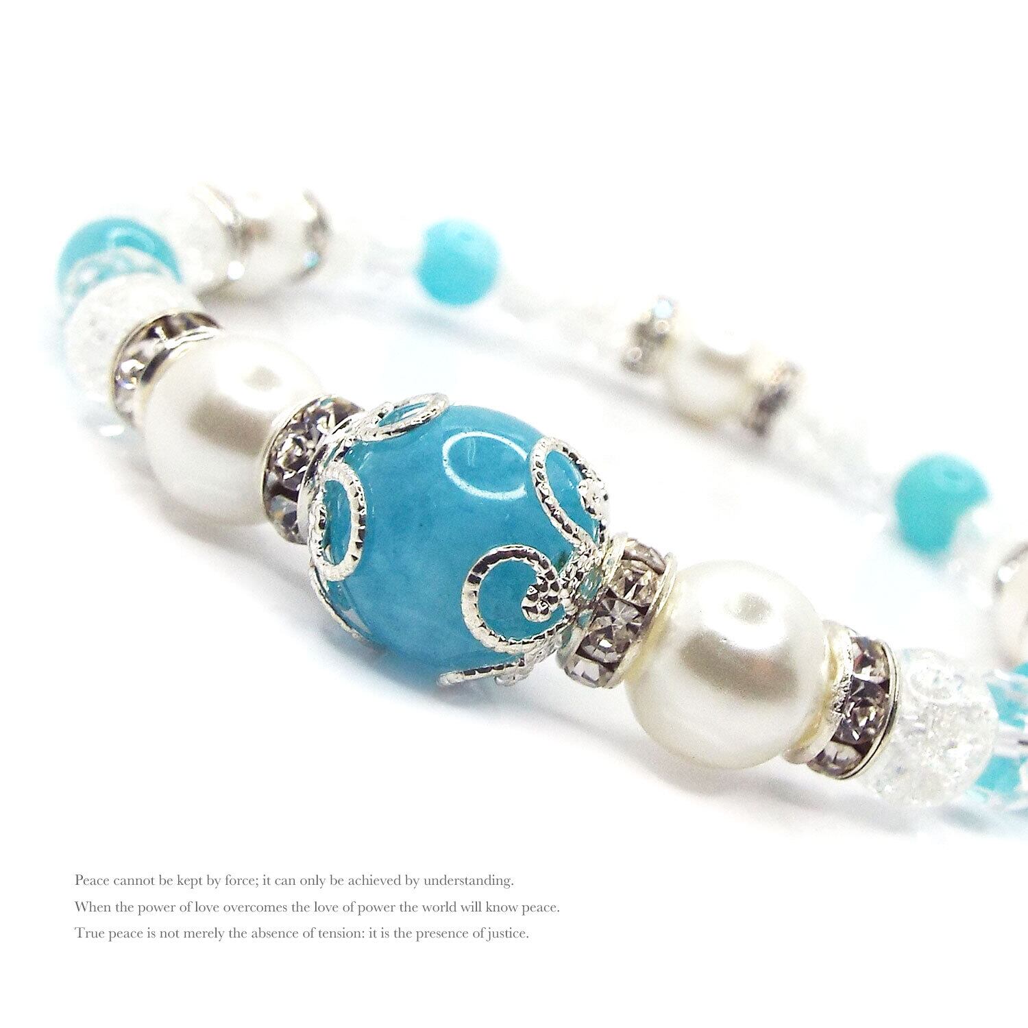 天然石 パワーストーン ブレスレット ブルークォーツ クラック水晶 シェルパール D2-86-1