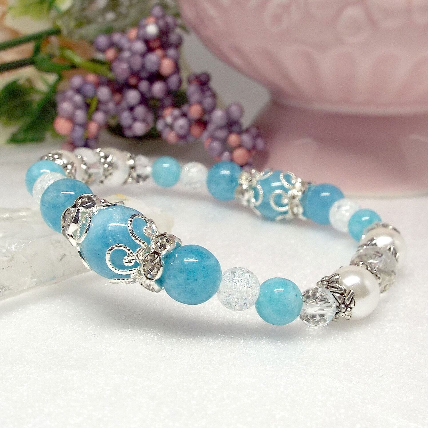 天然石 パワーストーン ブレスレット ブルークォーツ クラック水晶 パール Luxury D2-86-4