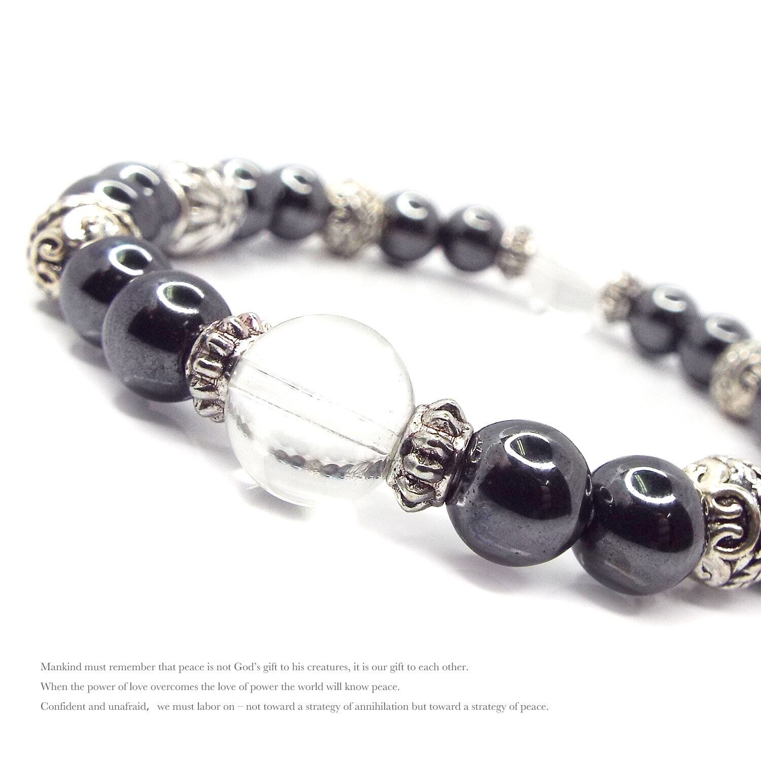 天然石 パワーストーン ブレスレット 守護ブレスレット 水晶 ヘマタイト D2-88-8