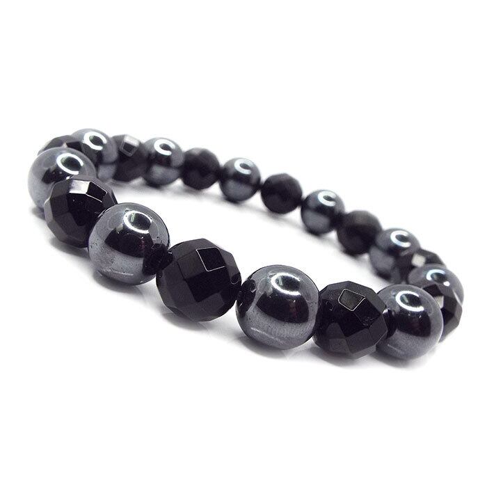 勝利を呼ぶ 天然石 パワーストーン ブレスレット ヘマタイト オニキスカット D2-98