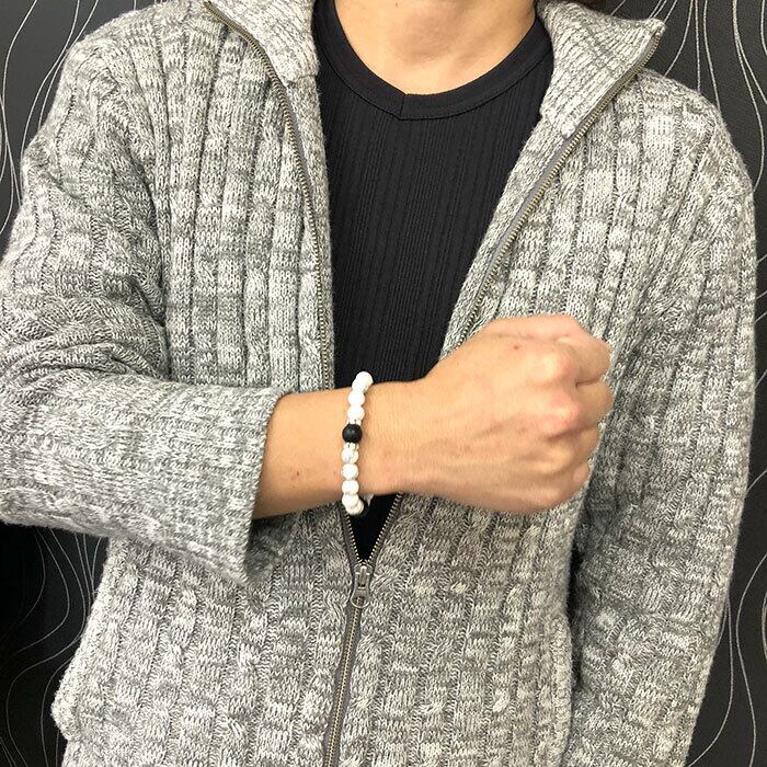キレイめ系 天然石 パワーストーン ブレスレット ホワイトターコイズ マットオニキス D2-99-2