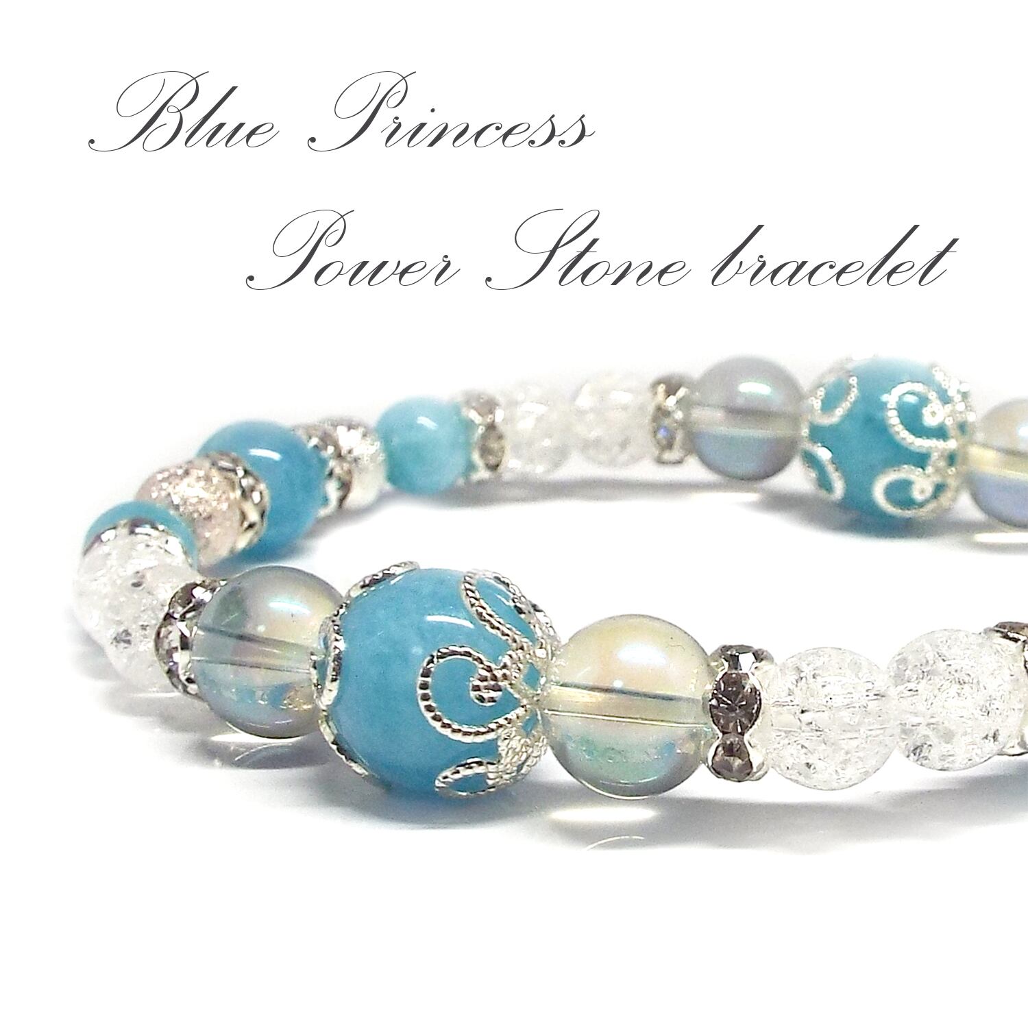天然石 パワーストーン ブレスレット Blue Princess オーラ水晶 D3-28