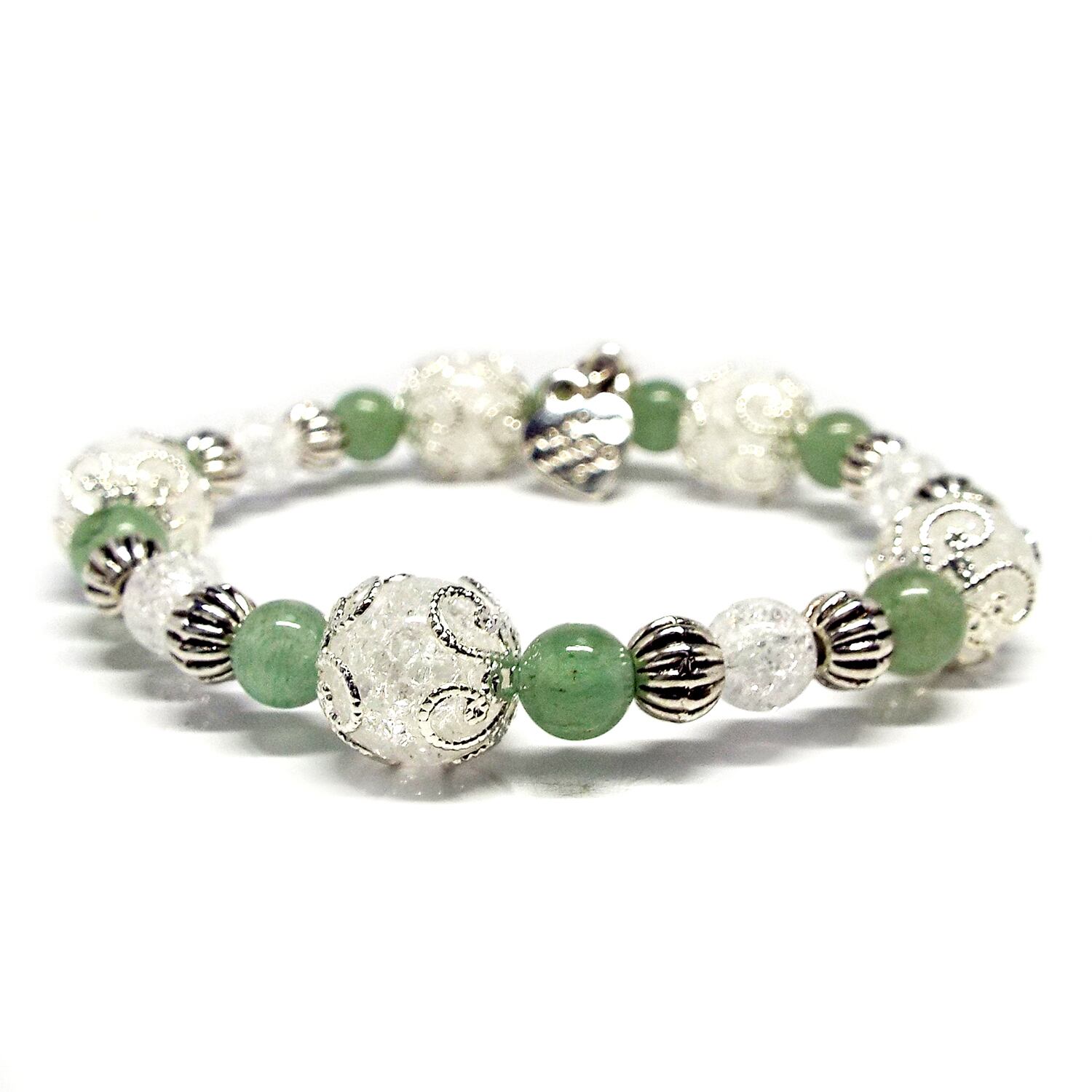 天然石 パワーストーン ブレスレット グリーンアベンチュリン クラック水晶 LOVEチャーム D3-32