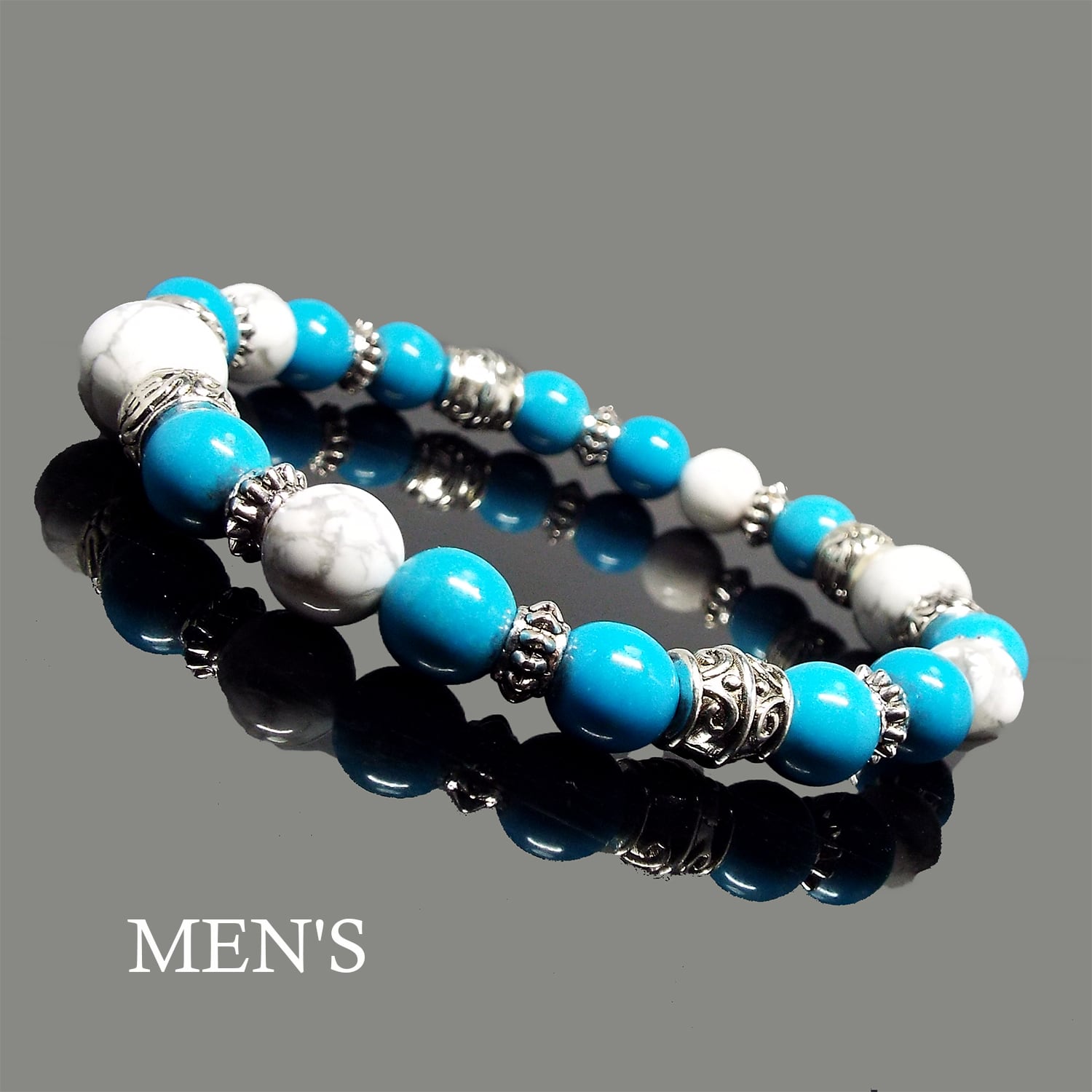 天然石 パワーストーン ブレスレット 夏恋 ターコイズ ホワイトターコイズ メンズ D3-41-2