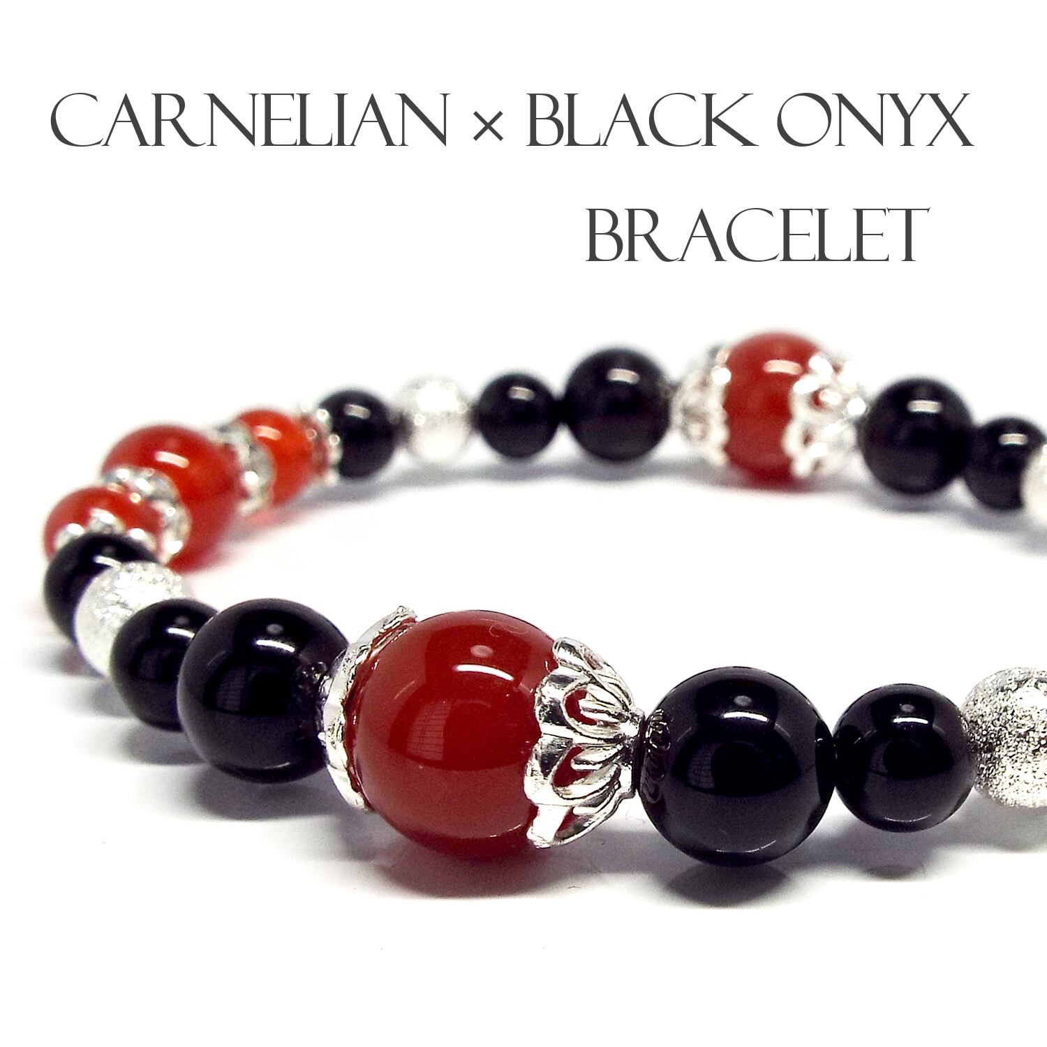 天然石 パワーストーン ブレスレット カーネリアン オニキス D3-47