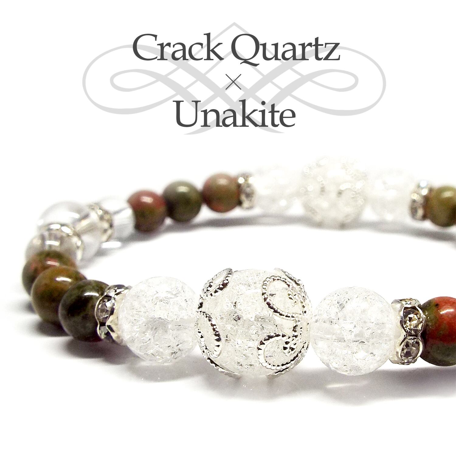 天然石 パワーストーン ブレスレット クラック水晶 ユナカイト D3-93
