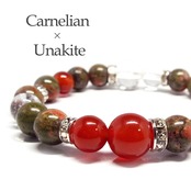 天然石 パワーストーン ブレスレット カーネリアン 水晶 ユナカイト D3-95