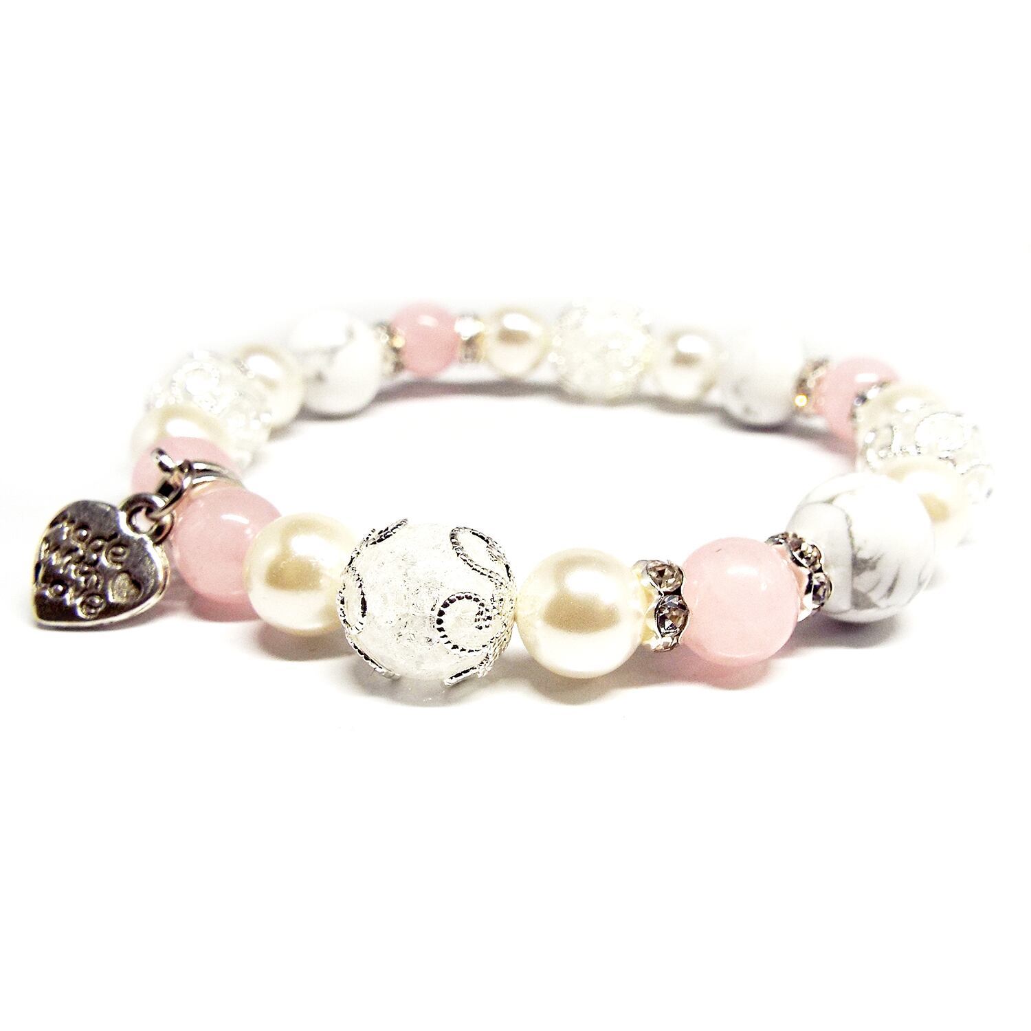 天然石 パワーストーン ブレスレット シェルパール クラック水晶 LOVEチャーム ローズクォーツ D4-17-2