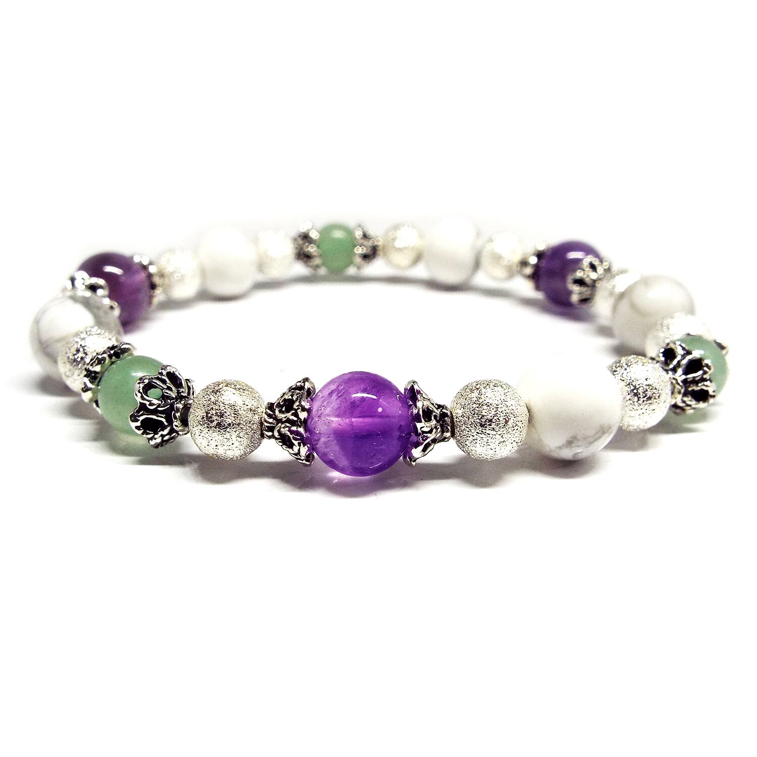 サイズ:ホワイトターコイズ 8mm アメジスト 8mm アベンチュリン 6mm